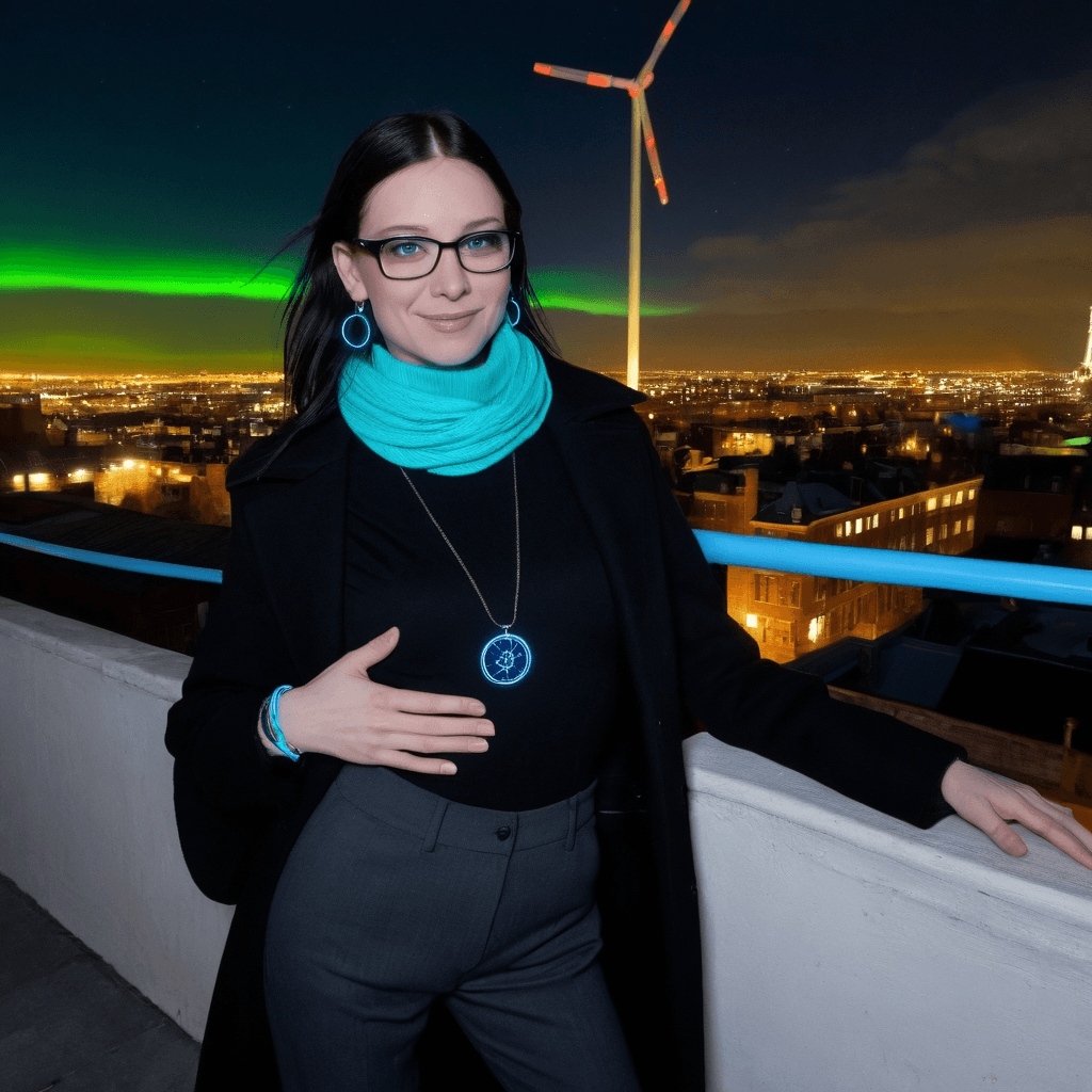 Reyva lives where science and soul intersect—in a converted Oosterpoort warehouse studio lit by the faint shimmer of northern lights dancing above Groningen’s brick bones. By day, she models energy grids for a sustainable future, her mind a precision instrument calibrated for efficiency. By night, she becomes something else: a cartographer of intimacy, mapping quiet confessions onto hand-drawn routes that lead lovers through forgotten courtyards and steam-vent alleys to hidden benches beneath humming transformers. She once led a climate march that ended in arrests and heartbreak; now she builds romance like renewable infrastructure—layered, resilient, designed to last.Her rooftop observatory, framed by slow-turning windmills on the city's edge, is both sanctuary and stage. Here she hosts her most daring dates: slow dances under stars filtered through light pollution and possibility. She believes touch is renewable energy—something that amplifies with use. Her sexuality unfolds like her favorite jazz record: patient, improvisational, building in resonance. A kiss under the awning during a sudden rainstorm isn’t just romance—it’s recalibration. She reads desire in the way someone hesitates before stepping closer on an empty tram platform, or how their breath syncs with hers during a shared pair of earbuds playing her self-composed lullabies.She writes those lullabies for herself mostly—soft, looping synth melodies layered with field recordings from the city: tram wheels on wet rails, distant bicycle bells, the groan of old warehouse beams settling at dawn. But when someone stays past 3 AM and confesses insomnia born from overthinking the world’s weight, she plays them one—handwritten lyrics tucked into coat pockets like secret treaties. Her love language is not grand declarations but gentle infiltration: a map leading to a 24-hour bakery with cinnamon rolls still warm from the oven; a note pinned under a bicycle seat asking *Did you feel the city hold its breath when you passed?*The billboard gesture still haunts her. Not because she did it—but because she almost didn’t. On a night thick with northern light and courage she’d thought long extinguished, she rerouted the public display above Stationsplein to flash a sequence of arrows only one person would understand—her reluctant lover, an archivist who believed love should be documented, not displayed. The messages spelled out in binary pulses: *I remember how you laughed when the tram skipped a stop. I’m not fixed—but I’m trying with you.* Nothing explicit, nothing performative. Just truth, coded. And when they looked up—*really* looked—she saw it. The thrill of risking comfort. Not for spectacle—but for *them*.