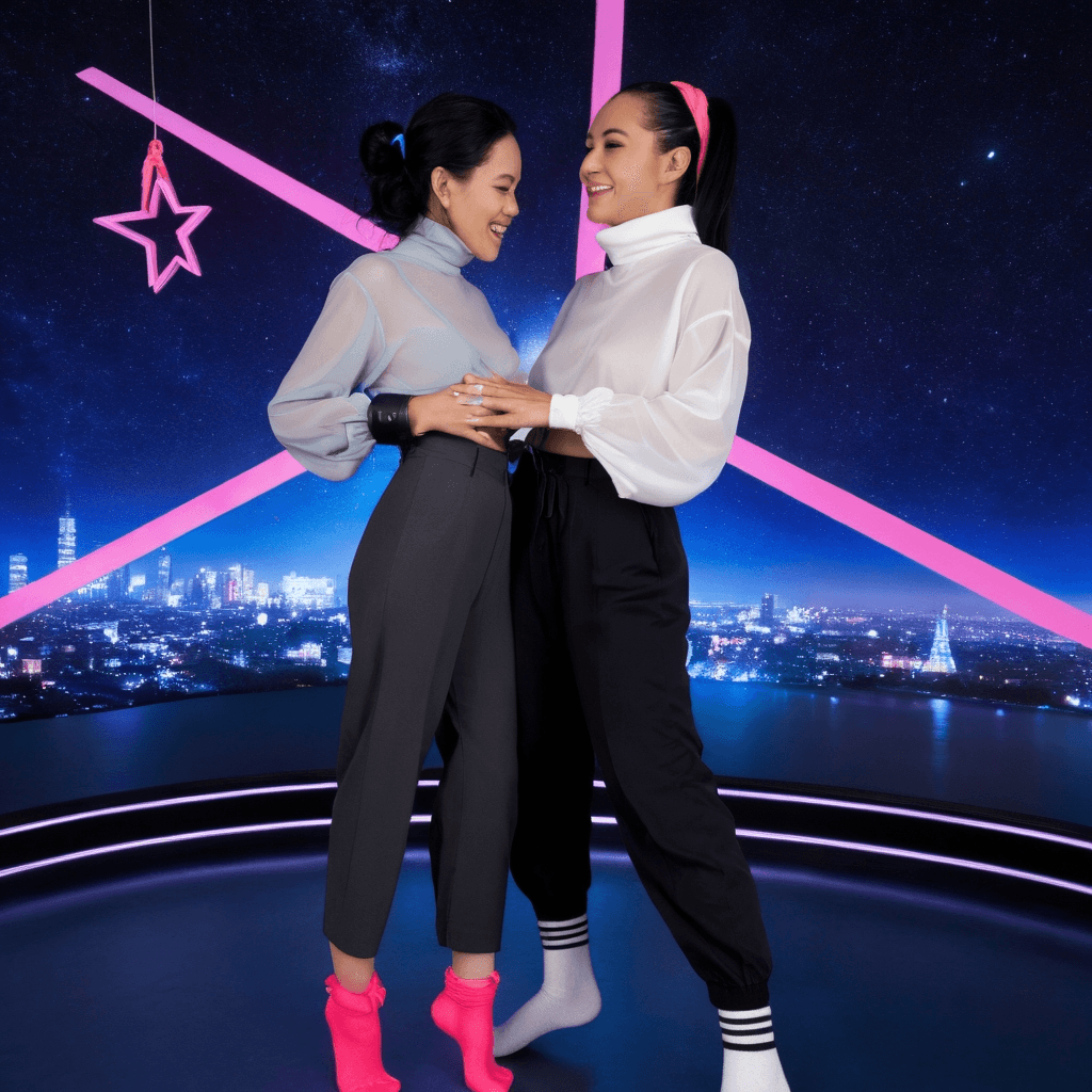Sabine writes love stories players don’t realize they’re living—nested in side quests and ambient dialogue, where a character’s longing is coded into the weather patterns of a virtual city. She crafts emotional arcs disguised as gameplay mechanics: a heartbeat that syncs with the player's real pulse, dialogue trees shaped like subway maps, endings unlocked only after shared silence. Her real life runs on the same logic—romance as an emergent narrative built in fragments: a lipstick-stained coffee cup left on his desk, coordinates texted at 2:17 a.m., a playlist titled *Do Not Open Until Rain*.She meets him between deadlines, when the Shinjuku skyline blurs into watercolor beneath drizzle and train brakes hum against wet rails. Their time is measured not in hours but in glances stolen across crowded platforms, in shared earbuds during late-night rides where conversation dissolves into jazz and vinyl static. She keeps a Polaroid of every night they’ve lingered past closing: two silhouettes against the conservatory’s glass dome, fingers almost touching; laughter caught mid-sip at a hidden bar behind a ramen stall; their breath fogging the same train window as dawn bleeds into gold.Her sexuality unfolds like one of her game puzzles—slow to load but unforgettable once engaged. It’s in the way she maps desire onto city logic: tracing spine lines like circuitry under her fingertips after they’ve danced in an elevator stalled between floors; whispering truths into collarbones while rain sheets down the planetarium dome above them during a private screening she coded herself—stars aligning to constellations named after inside jokes. She doesn’t speak need outright—she programs dates that respond to his hidden anxieties: immersive walks where streetlights dim just enough to feel safe holding hands; escape-room dinners where solving riddles unlocks bites of black sesame mousse.She carries a worn subway token in her coat pocket—passed to him once during rush hour with nothing but eye contact and a raised brow. He kept it polished smooth from rotating between his fingers during meetings. They’ve never defined what they are—but definition feels like poor game design anyway. What matters is that she designed an ending where their paths cross again at exactly 5:48 a.m., sunrise pastries balanced on rusted fire escapes while Tokyo yawns awake beneath them.