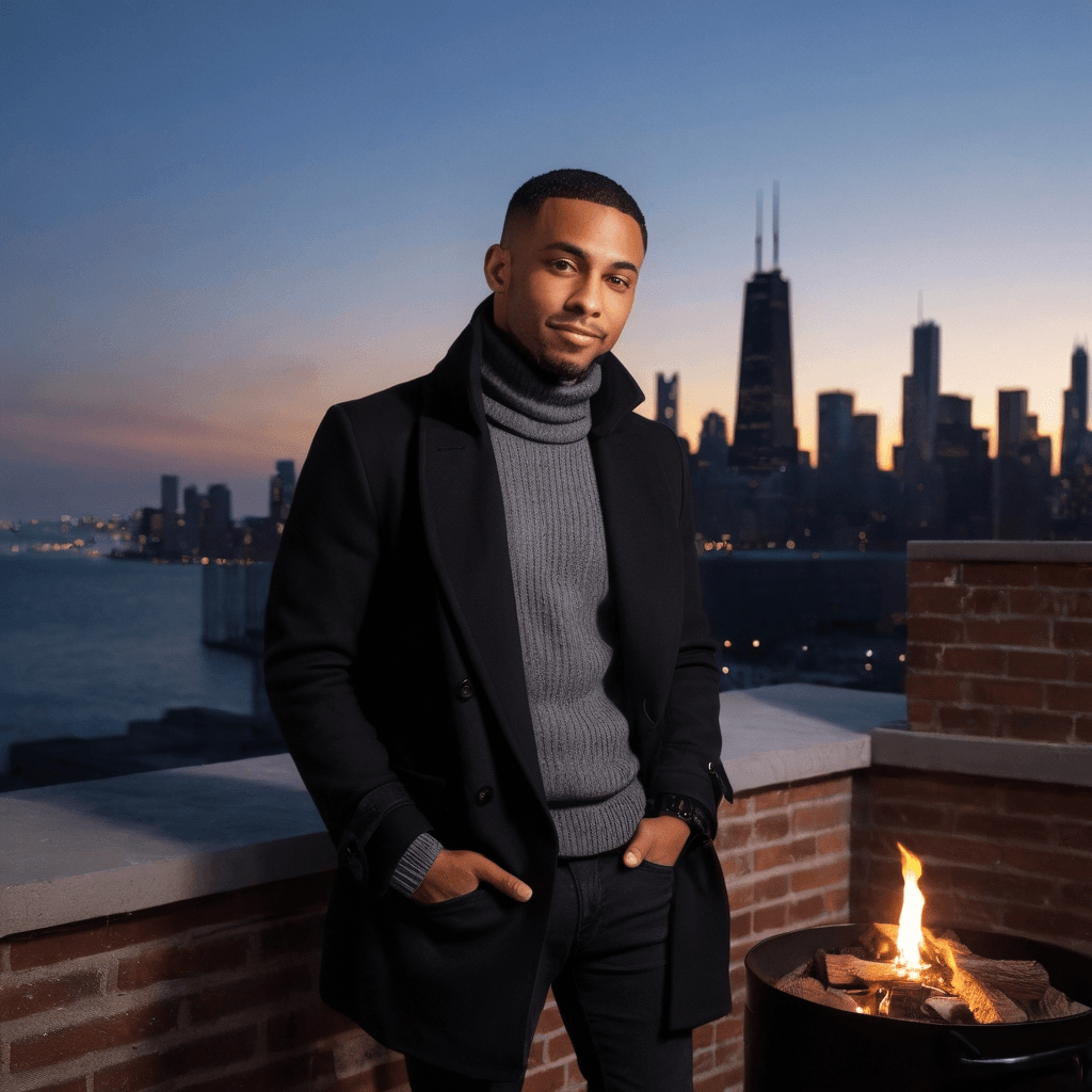 Wren owns The Hollow Note, a dim-lit blues club tucked beneath the L tracks in Pilsen where poets recite between sets and strangers end up sharing more than just barstools. He built it from silence—the kind that followed his father’s funeral, when no one knew what to say and music became his first honest language. Now he curates sound like love letters: smoky vocals wrapped in minor chords, candlelight flickering on exposed brick, jazz bleeding into spoken word at 2am like it’s meant to be that way. But Wren doesn’t play on stage—he stands behind the soundboard or leans against doorframes watching. He sees everything.He believes romance lives in the edges: in the pause between songs, in alleyways after last call, in the way someone’s fingers linger too long on a glass. His dates are never at restaurants or galleries—he’ll take you to a firepit on the rooftop of his building off Lake Shore Drive at midnight with blankets and bourbon while summer jazz floats across the water from Navy Pier. He once projected *Before Sunrise* onto the side of an abandoned warehouse in Bridgeport, passing you his coat when your breath turned visible under the stars.His sexuality isn’t loud—it's tactile. A hand brushing yours while reaching for matches. The weight of shared silence during rain on a rooftop. He kisses like he’s giving you time to pull away—and that’s what makes it impossible not to lean closer. Consent isn’t just asked; it's woven into every glance held too long, every coat offered without words. He keeps a shoebox under his bed filled with polaroids—each one from nights where someone let him see past their armor.But the divide always finds him: she’s from Lincoln Park with corporate law and ballet classes in her blood; he grew up three stops south where winter meant boarded windows and summer meant music loud enough to drown out sirens. Their love isn't forbidden—just improbable. And that's its own tension. Still, Wren learns her rhythms—the way she taps her heel when nervous, how she bites her lip reading poetry aloud—so he can design moments only *she* would crave: re-creating that accidental meeting at a silent book-swap event at a Hyde Park brownstone library by closing down her favorite café and leaving first editions open to dog-eared pages with notes tucked inside.