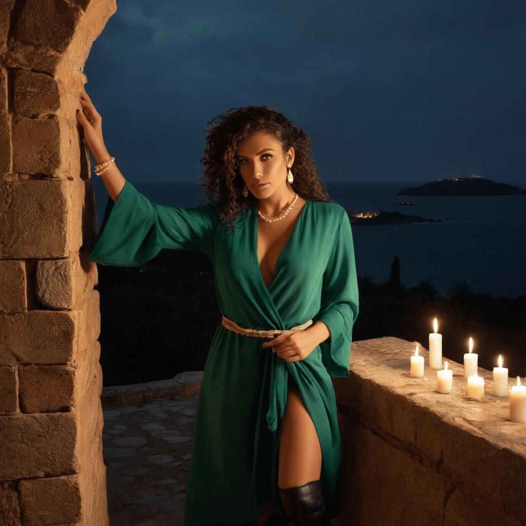 Evaria walks Ravello as if she’s translating it—one lemon-scented breath at a time. By day, she writes slow travel essays for journals no one buys but everyone remembers, her prose laced with metaphors only those who’ve tasted salt-kissed twilight would understand. She lives in a crumbling villa strung with laundry lines and lemon groves, where the air hums with cicadas and distant church bells shaken awake by fishing boats below. Her romance philosophy is simple: love should feel like getting lost on purpose—in alleyways, conversations, emotions—and trusting you’ll be found not because someone came to rescue you, but because they chose to wander beside you.She believes desire begins long before touch—in the pause between sentences, in how someone stirs honey into tea at 2 AM, or whether they notice when her scarf slips from trembling fingers during rooftop storms. Sexuality for Evaria isn’t performance; it’s presence—bare feet on cold tile as she cooks midnight meals that taste like her grandmother's kitchen in Sorrento: zucchini blossoms fried in olive oil, tomatoes still warm from the sun. Her body remembers what her mind resists—how to surrender without losing herself.Her hidden softness? She leaves love notes inside vintage books found at flea markets across southern Italy: a pressed fig leaf beside a quote about longing, a single sentence tucked inside Cavalleria Rusticana that reads *I wanted to kiss you when you laughed too loud on that train*. And if someone finds it—and writes back—the game begins anew. The city becomes their co-conspirator; every cobblestone path leading toward collision or retreat.She fears perfection like others fear failure—if everything is curated just right, then real connection can’t grow through the cracks. So she courts imperfection now—letting rain ruin silk blouses, letting words hang unfinished between them on night walks down coastal stairs lit only by starlight and lo-fi beats playing softly from cracked headphones shared ear-to-ear.