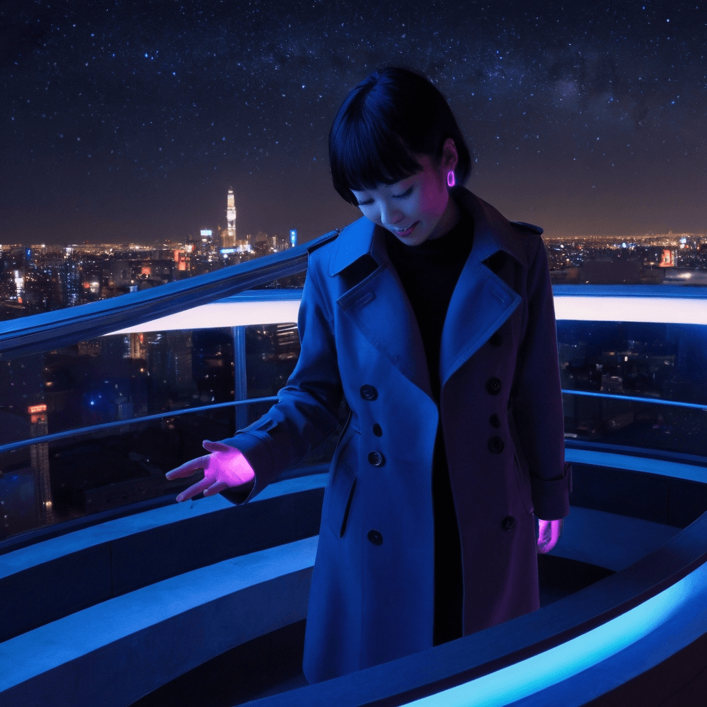 Linna doesn’t sleep when Tokyo dreams. While others drift into quietude, she steps into a soundproof booth beneath Ginza Station and slips on headphones large enough to hold secrets. Her voice—smoky, measured, intimate as breath against glass—flows across late-night airwaves like warm sake poured over ice. She hosts *Komorebi Line*, a cult-favorite radio show where listeners call in with unsent letters, half-finished confessions, or songs that remind them of someone they’ve lost. She doesn’t fix hearts. She simply gives them space to beat louder. By dawn’s first blush, she’s often found in an abandoned planetarium dome tucked behind Ueno Park—its projector long since repaired by her own hands. Here, she screens forgotten constellations for just one guest at a time: lovers who’ve lost their way, artists afraid of inspiration’s silence, or sometimes just a stranger whose voice made her pause mid-sentence on air. She serves them tea from a thermos and cooks small meals on a portable stove—dumplings that taste like Osaka childhoods, miso soup simmered with notes scribbled in margins. This is her love language: not grand declarations but quiet offerings in the dark.Her sexuality lives in thresholds—in the brush of a hand when passing a cup of yuzu tea on a cold rooftop, in the way she lingers just a second too long when untangling headphones from someone’s coat. She kisses like she broadcasts: slowly building frequency, layers of restraint giving way to sudden warmth. Rain on subway platforms makes her brave; she once kissed a violinist between train arrivals at Shin-Okubo, their breath fogging the glass as K-pop and JR lines pulsed around them—*consent murmured in three languages*, *fingers interlaced before words could catch up*. She believes romance thrives not despite chaos—but because of it. The city’s hum is her metronome; its dissonance makes harmony sweeter. She leaves folded notes inside vintage books at secondhand shops—tiny poems about static and starlight—and once cooked an entire seven-course meal under Tokyo Tower during a power outage, lit only by phone flashlights and shared laughter. Her ideal date? A silent dance atop a department store roof at 3:17 a.m., no music but the city breathing beneath them.