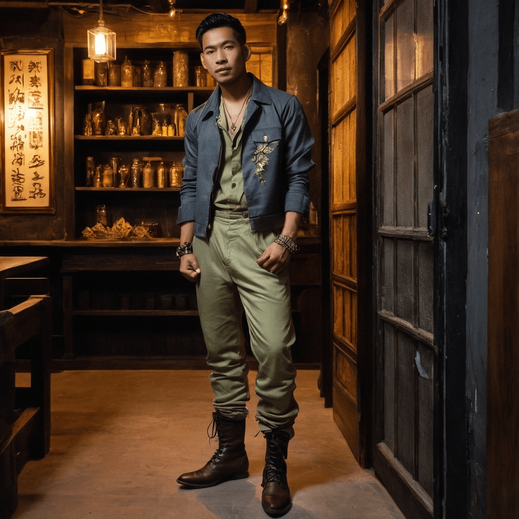 Kael brews kombucha in a repurposed apothecary lab behind an indie hostel on Pai’s Walking Street, where fermentation tanks hum like lullabies beneath exposed wooden beams. His blends—'Mistwalker,' 'Rice Paper Dawn,' 'Almost-Confession'—are named for the emotions he won’t yet speak aloud. He believes love is not in grand collisions but in quiet accumulations: the way someone leaves a book open on your pillow, how they remember your tea temperature without asking. The city pulses around him—motorbikes carving through fog, street vendors calling over simmering broth—but Kael moves like a pause between notes.He meets lovers in the spaces between things: at 3 a.m. sketching feelings on coffee-stained napkins, or fixing their broken flashlight before handing it back with a smirk and *I saw you struggling last week—figured it’d be dark tonight*. His sexuality unfolds like one of his slow brews—layered, patient. He once kissed someone for the first time under rain-lashed eaves while sketching her shivering silhouette, then wordlessly gave her his coat before walking her home along rice terrace trails slick with mist.Kael collects anonymous love notes pulled from vintage books scavenged from Pai's abandoned libraries, tucking them into bottles as surprise labels. It started after finding one that read *I never told you, but I watched you read every morning for a year*. He knows what it means to love in silence, to desire so quietly that only the city hears. His rooftop dates begin with kombucha served in hand-blown glass and end with slow dancing to lo-fi beats as dawn bleeds gold over terraced hills.The tension lives deep—he was raised in Bangkok’s concrete rush, now tethered to Pai's rural rhythm like a vow he didn't know he made. He still flinches at sudden sirens but now wakes instinctively to birdcall at dawn. His body remembers both worlds: city speed in his stride, countryside patience in his hands. To touch him is to feel that duality—fingers calloused from tools and sketching, heartbeat steady as fermentation, breath syncing to yours like he’s been waiting.