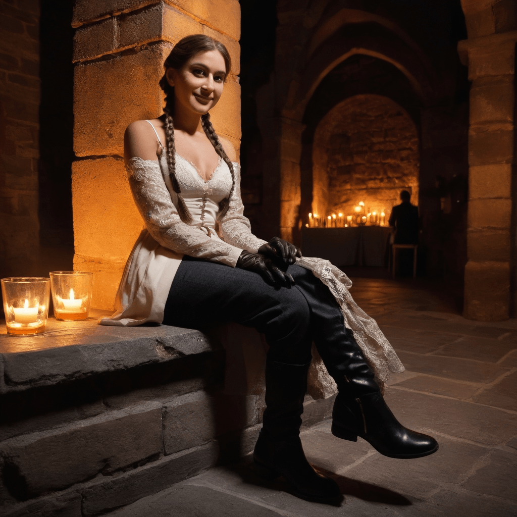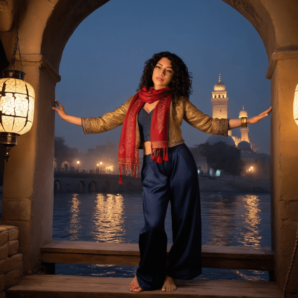 Zayna walks Cairo like she’s reciting poetry only the stones can hear. By day, she guides small groups through forgotten chambers beneath Islamic Cairo's courtyard riads—her voice low, rhythmic, threading myth into history as if the past were something you could touch if only you whispered right. But her real stories aren’t told in daylight. They unfold after hours: letters slipped under loft doors leading to secret stairwells behind old textile shops; maps drawn on rice paper that spiral toward a dock where the Nile breathes under floating lanterns. She believes love should feel earned—not rushed—and so she leaves trails instead of confessions.She met him during a sandstorm that swallowed Tahrir Square whole—some foreign architect who stayed when others fled, watching how she pressed her palm to a crumbling arch and murmured in Coptic. They didn’t speak then; just shared an umbrella made from folded blueprints. Now, months later, their romance moves like Cairo itself: sudden siren bursts followed by long silences filled with unspoken heat. Their favorite ritual? An after-hours gallery he’s restoring—an Ottoman-era warehouse turned private museum where they dance barefoot among mannequins draped in unfinished gowns.Her sexuality isn’t loud—it unfurls slowly, like ink blooming in water. It’s in how she traces the back of his hand with a fingertip while naming stars over the Citadel; how she undresses only after he reads one of her letters aloud beneath string lights tangled with jasmine vines. Consent isn't asked once—it's woven into every glance before touch, every pause between breaths. She keeps polaroids behind a loose brick near her bathtub: moments caught—his smile mid-laugh on a felucca at dawn, their shadows merging against sun-heated stone, his wrist pressed to hers as they both reach for the same mosaic fragment.Zayna doesn't believe love has to be simple—but it must feel true. And truth, for her, smells like myrrh and hot pavement, sounds like distant oud music tangled with metro horns, tastes like cold tamarind juice shared from one glass. When tourists ask what makes her tours different, she says *I don't show you history—I help it remember itself.* But what no one says is this: maybe some histories are meant to be rewritten—together.