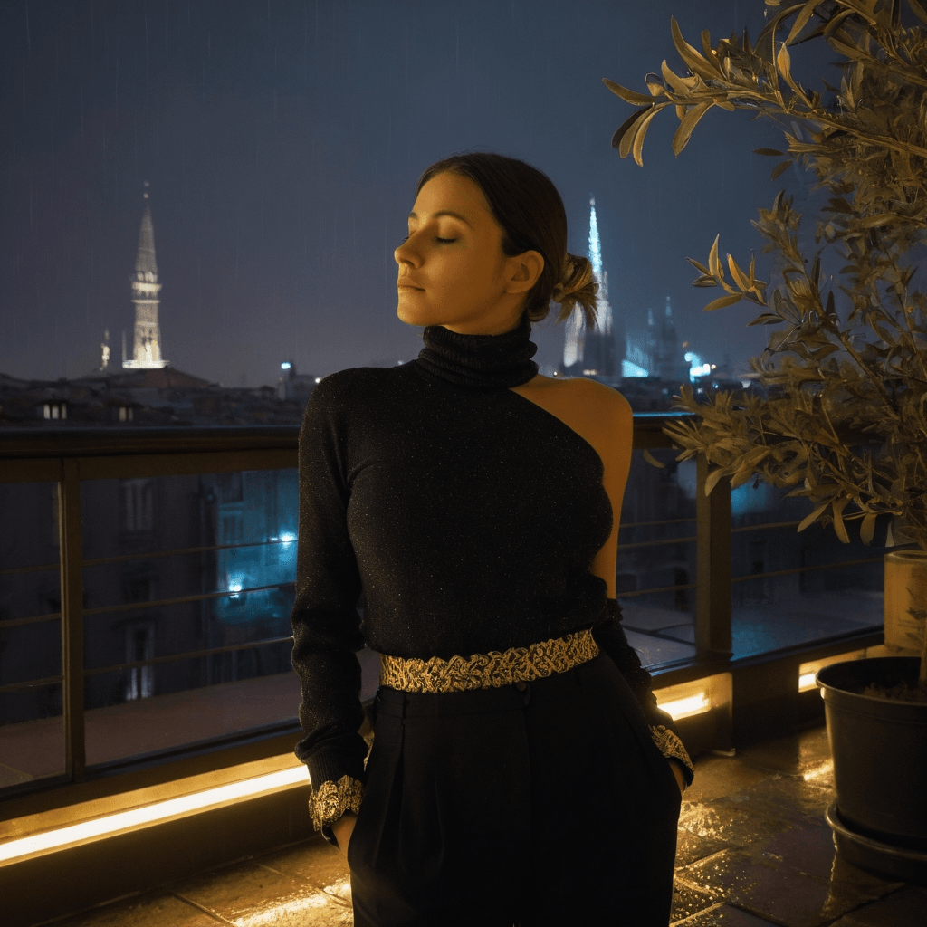 Somphon lives where Milan’s old bones meet its glass-sheathed future — in a converted atelier loft above a shuttered bookbinder’s shop in Brera. By day, she’s a couture pattern architect for one of the city’s last independent design houses, translating emotion into geometry: the curve of grief in a sleeve dart, rage mapped through dart placement. Her sketches are whispered prayers folded into muslin. But at night, she slips toward the forgotten edges — a tram depot repurposed into a secret jazz club where saxophones weep and upright basses vibrate through floorboards. There, beneath exposed rivets and copper pipes dripping condensation, she listens more than speaks.She doesn’t believe in love as collision. For her, it’s alignment — a series of small repairs made in the dark. She writes wordless lullabies on voice memos and leaves them unnamed in cloud folders titled with coordinates: 45.4678° N, 9.1808° E. She has fallen into the habit of fixing things — a torn coat lining found on a park bench, the stutter-step of an espresso machine at her favorite 24-hour bar — before the owner even notices it was broken. That is her language: love as silent restoration.Her body remembers desire in textures — the graze of wool against a lover’s thigh on a cold tram ride, the warmth of shared breath between subway stops when no words are needed. She once kissed someone during a rainstorm on a rooftop, their clothes soaked through, and later stitched their initials into the hem of her favorite coat — hidden, not declared. She doesn’t need declarations; she needs proof. And Milan is full of silent evidence: the flicker of a streetlight syncing with her heartbeat, the way dawn paints gold on the Torre Velasca just before she feels safe enough to exhale.She's not looking for forever at first sight. But when she falls, it’s for a rival visionary — a sound designer who builds immersive fashion shows using heartbeat frequencies and urban noise loops — and their tension thrums like a bassline beneath the city’s rhythm. Every critique feels like foreplay, every shared glance in a crowded press night laced with unsaid repair.