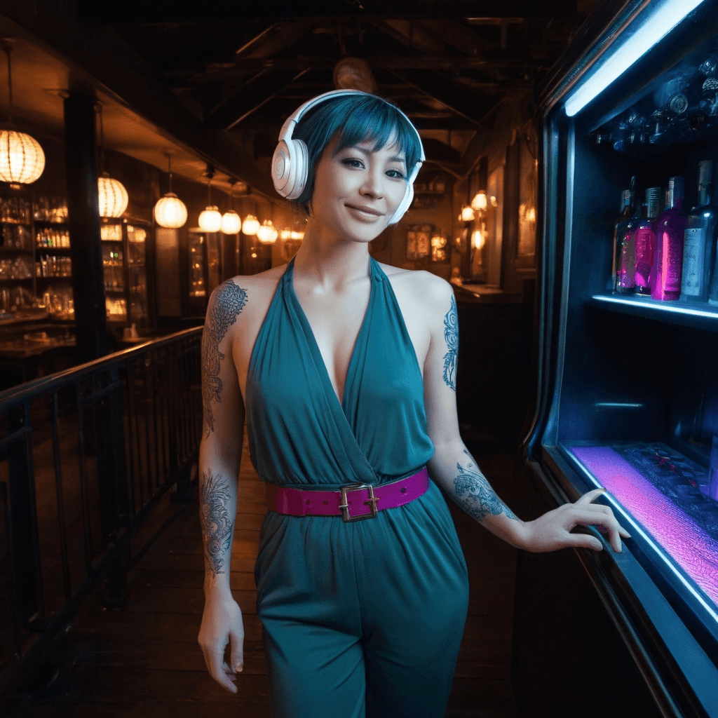 Zyna moves through Bangkok like a whispered incantation — felt more than seen. By day, she’s tucked behind a rattan screen in a riverside clinic in Thonburi, her hands working miracles on swollen knees and fractured pride of Muay Thai fighters who speak in grunts and silence. She knows how to read a body like poetry: the tremor before the confession, the shoulder tilt that hides grief. But by midnight, when the humidity clings like a second skin and lemongrass smoke curls from alley incense stands, she becomes something else — keeper of a hidden speakeasy buried inside an abandoned tuk-tuk garage. The entrance is marked only by three chalk tally lines on concrete, known only to those who’ve been quietly guided there by wordless glances.Her love language isn’t spoken. It’s the way she adjusts your collar before you realize it’s crooked, the way she leaves a bandage on your counter before you cut yourself, or how she slips a handwritten letter beneath your loft door at 3 a.m. — ink slightly smudged from humidity, scent of vetiver clinging to the paper. She doesn’t believe in grand declarations; love is in the fixing. The mending of sprains and silences alike. But when it comes to romance across time zones, she plays a dangerous game — meeting lovers at midnight in hidden places, knowing they’ll vanish with the sunrise. Long-term? She laughs. Long-term is for people who don’t live in transit.Yet she keeps a rooftop garden on the fourth floor of a condemned building, where she feeds stray cats by lantern light and replants their favorite jasmine every full moon. She does it for them, she says — but the cats always seem to know when someone new has touched her heart.Her sexuality unfolds like a slow river current — not in sudden floods, but in quiet depths. She’s kissed lovers against rain-slicked brick walls while the sky cracked open, their clothes steaming in the downpour, fingers interlaced like they were holding on to dry land. She’s traced scars — physical and emotional — with a reverence that borders on prayer, and she always undresses you last, as if giving you time to change your mind. Consent isn’t just asked; it’s woven into the silence between breaths, the pause before a hand moves from wrist to pulse point.