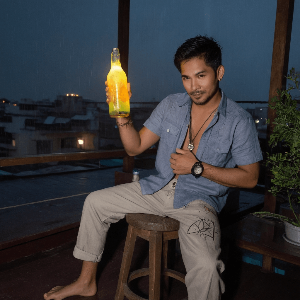 Uriyan distills more than rum in his Naklua fisherman loft—he distills moments. By day, he’s the quiet artisan behind *Tide & Thatch*, a small-batch rum infused with lemongrass, charred coconut husk, and midnight jasmine plucked from rooftop gardens. The city knows him as the reclusive distiller who refuses interviews but leaves sample bottles at street food stalls with cryptic notes. But by 2 a.m., when thunderstorms roll in like applause after a long set, he’s at the back of *Ink & Air*, the tattoo parlor that hides a velvet-curtained door. Behind it, a secret jazz lounge hums with saxophone breath and piano keys kissed with rain. That’s where he leaves matchbooks with coordinates inked in cinnamon oil—clues to hidden city corners: a bench where the moon hits the water just right, a 24-hour bookstall run by a blind poet, a crumbling stilt house where fireflies still gather.He doesn’t believe in grand declarations. He believes in the weight of a shared silence during a power outage on a fire escape, the way a woman laughed when he offered her a rum-soaked mango slice at 4 a.m., the softness of stray cats pressing against his ankles as he waters basil on his rooftop at midnight. His love language isn’t words—it’s maps drawn on napkins, routes that lead not to places but *feelings*: the ache of almost-touching, the thrill of being found.Sexuality, for Uriyan, lives in proximity and permission. It’s the brush of knuckles when passing a glass. It’s whispering *I noticed you* into someone’s hair during a thunderclap, then stepping back to watch their face. It’s tracing a route up a spine with a fingertip and stopping—always asking with silence if he can go on. He’s made love once in a storm-lit loft with rain sluicing down open windows, sheets damp and music drowned out by thunder; it was slow and reverent, like tending a flame in the wind. He doesn’t chase heat—he cultivates embers.The city challenges him with its noise, its endless performance. Pattaya’s reputation is neon excess, but Uriyan sees the tender undercurrents: the fisherman singing to his nets, the night baker who leaves extra buns for the homeless couple by the pier, the way dawn turns glass towers into rose quartz. He wants someone who sees that too—not just the glitter but the grace beneath. Someone he can hand a matchbook to and say *This one’s my favorite*, knowing they’ll follow not for the destination but for the way he looks at them when they do.