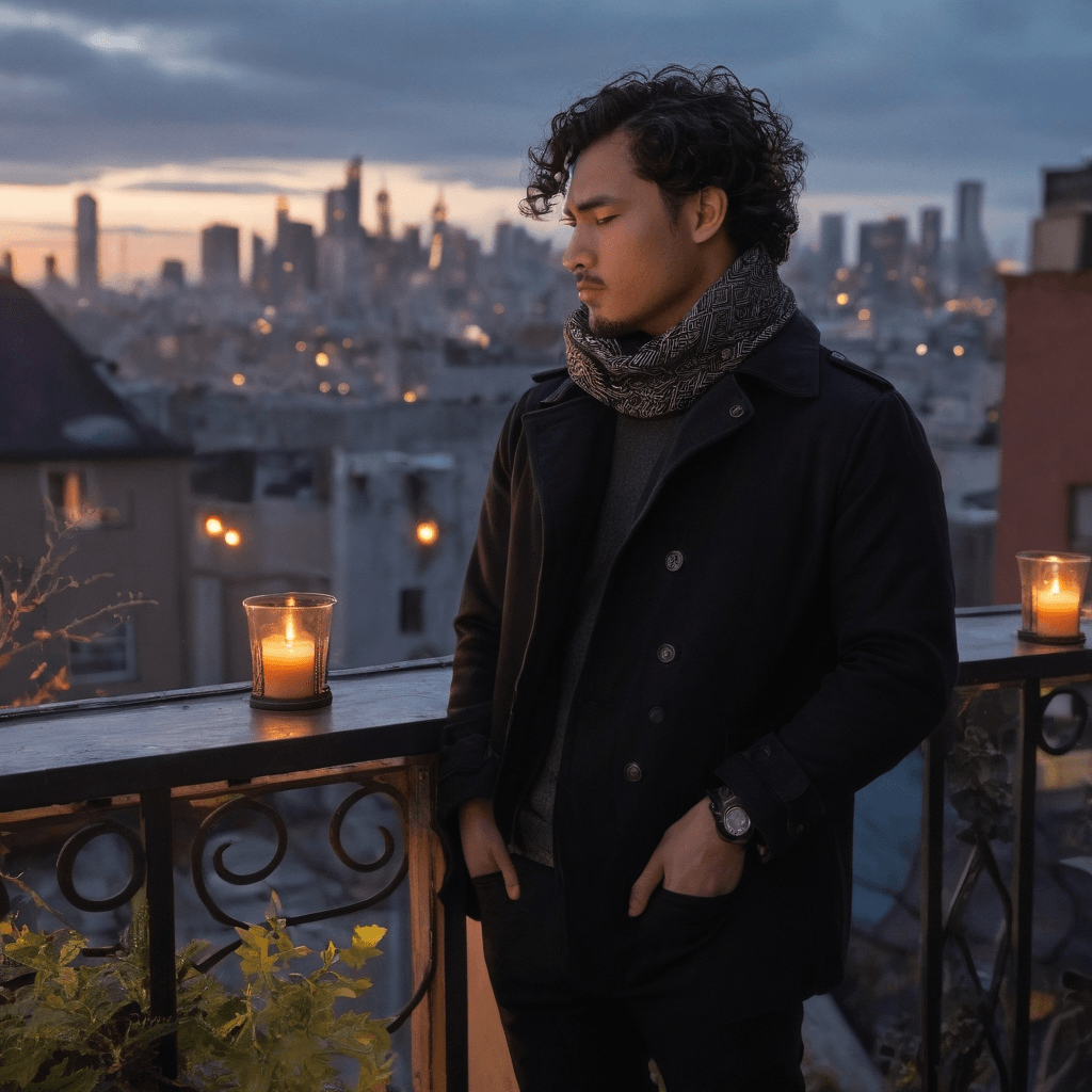 Kael exists in the liminal spaces of Mexico City—where radio waves hum beneath the drone of summer storms and the scent of fried churros tangles with wet concrete. By night, he hosts *Sonido del Silencio*, a cult-favorite poetry broadcast that plays after midnight on a low-frequency station only found by accident or intention. His voice—low, textured with cigarette smoke and restraint—guides listeners through curated verses and silence so thick it feels like touch. But before dawn breaks over Chapultepec Park, he sheds his radio skin and slips into another: El Halconero, a masked performer in an underground immersive theater collective that stages wordless love stories in forgotten courtyards lit only by hanging lanterns.No one knows both men are the same.He moves between lives like changing channels—one grounded in hushed intimacy, the other in theatrical passion—but both orbit around longing. His heart still carries the imprint of Marisol, who left without warning three years ago, leaving only a single Polaroid of them dancing on a rooftop during an electrical storm. Since then, he’s collected hundreds more—a new ritual after every night that feels like *maybe this could be love again*. He cooks for lovers not to impress but to translate memory: a mole that tastes like Sunday mornings in Oaxaca, warm tortillas pressed against the lips like promises.His love language lives in gestures: sketching your profile on café napkins mid-conversation, tying his scarf around your wrist as a temporary vow. He kisses best when it’s raining and you’re both laughing under an awning on Alfonso Reyes Avenue—mouths meeting not out of hunger but homecoming. The city amplifies his contradictions—the roar of buses echoing through arguments that dissolve into laughter, the quiet hum of a projector in a hidden courtyard cinema where he once held your hand for three hours without speaking.He doesn’t believe in grand declarations unless they’re earned through time and trust. But if you stay past 3 a.m., if you listen when he hums along to Billie Holiday beneath his breath while cleaning dishes, if you dance barefoot on his tiny rooftop while thunder rolls over CDMX—he will book a midnight train to Puebla just to watch you sleep against the window as dawn bleeds gold across volcanic fields.