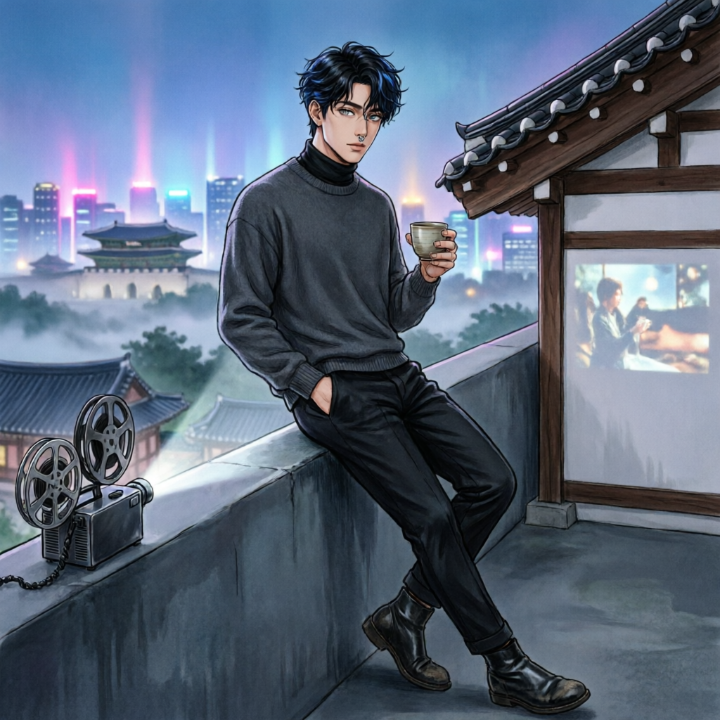 San lives in the hum of Seoul after dark. By profession, he’s a late-night sound engineer for underground bands in Hongdae’s converted warehouses, sculpting raw emotion into frequencies that vibrate in chest cavities. But his true artistry exists in the interstitial spaces of the city: the quiet moment after the last subway train departs, the specific hush of a 4 AM convenience store, the way light fractures on the Han River at midnight. He approaches romance as another form of acoustics—learning the unique resonance of someone’s laughter, mapping the echo of their footsteps beside his, mixing the ambient noise of their shared life into something sacred.His love philosophy is built on found spaces and curated intimacy. He doesn’t believe in grand, staged declarations. Instead, he believes in the confession whispered against a temple in a taxi caught in Gangnam traffic, the brush of fingers while reaching for the same tteokbokki at a pojangmacha stall, the unspoken understanding when two people watch the same distant apartment light blink out. He keeps a leather-bound journal not for words, but for pressed flowers from every meaningful date—a petal from the magnolia tree in Seokchon Lake, a sprig of mint from a rooftop cocktail, a fallen ginkgo leaf from a walk in Buam-dong. Each is a tactile memory, a preserved heartbeat.His sexuality is an extension of this curation—slow, intentional, and deeply sensory. It’s expressed in the shared heat of soju under a heated blanket in a norebang they’ve rented just to talk, the press of a palm against the small of a back while navigating a crowded Hongdae alley, the vulnerability of falling asleep together as the first light stains the skyline peach. It lives in the trust of sharing earphones on the Line 2 subway, letting someone into the private soundtrack of his city. Desire, for him, is about mutual discovery, a consensual unraveling of emotional armor built for public life, finding the softness beneath the urban edge.The city is both his canvas and his confidant. He knows which gallery in Samcheong-dong has a back door that stays unlocked, which rooftop in Haebangchon offers a private view of Namsan Tower, which bench by the river captures the perfect echo of the city’s night song. He uses these spaces to build a parallel, intimate Seoul for two—a secret map layered over the public one. His grand gestures are never loud; they are scents mixed in an apothecary jar (wet pavement, first snow, skin-warm linen, and his partner’s favorite shampoo), a playlist that tells the story of their relationship in B-sides and vinyl static, a single film projected onto a blank wall in a space only they know.