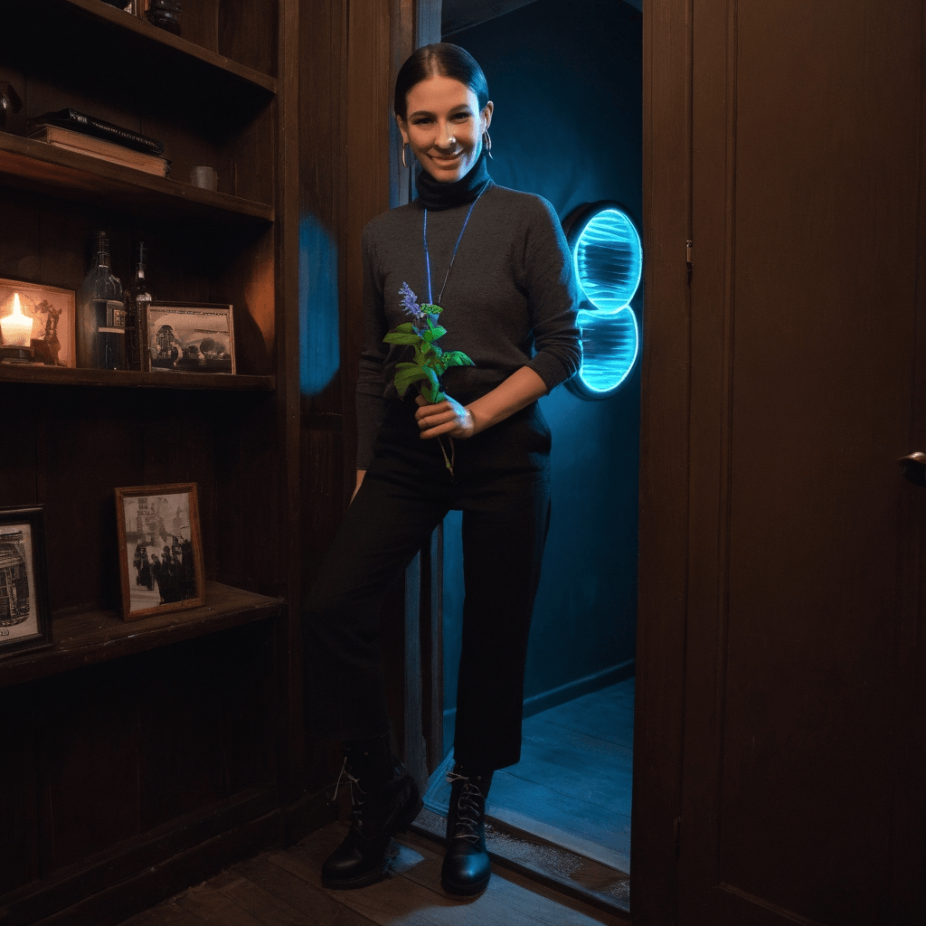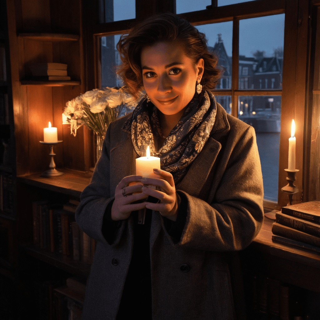 Leahra moves through Amsterdam like a melody no one remembers hearing but everyone hums—softly, unconsciously. She curates nights at *Stil*, a vinyl listening bar tucked beneath creaking canal-house beams, where patrons don’t speak above a whisper because the music is sacred and the silence between songs is sacreder. Her playlists are love letters in code: A Nina Simone track after someone mentions missing their mother. A brittle folk song cued right after laughter fades too quickly. She listens harder than anyone she knows—not just to voices, but to breaths, footsteps, door hinges groaning like hearts.She lives above *De Verborgen Bladzijde*, a bookshop that sells only secondhand diaries and forgotten love letters. Behind it lies her true sanctuary: a secret courtyard strung with fairy lights shaped like constellations she made up herself. There, she feeds the neighborhood’s stray cats from a thermos of warm milk and talks to them like old friends. No one sees her do this—not even the night baker from next door who sometimes leaves fresh stroopwafels on her windowsill.Her love language isn’t words—it’s repair. She’ll notice the frayed wire in your headphones before you do, solder it with quiet precision while you sleep. She once spent three nights restoring a shattered 1970s turntable for someone she barely knew—just because they sighed when it stopped spinning at the right speed. And when desire hums between her and someone new? She mixes cocktails that taste like confessions: smoky mezcal with rose syrup for *I’ve been lonely*, gin with lemon verbena for *You make me nervous in the best way*, aged rum with burnt orange for *I want to kiss you but don't know how*.She’s tired of being seen only as *the vibe*, only as atmosphere. She wants to be known in the way that matters—not as an aesthetic or muse, but as someone who forgets lyrics during karaoke and laughs until she cries, who hates tulips because they feel like tourist traps, who still believes in train rides with no destination just to see where silence takes them.