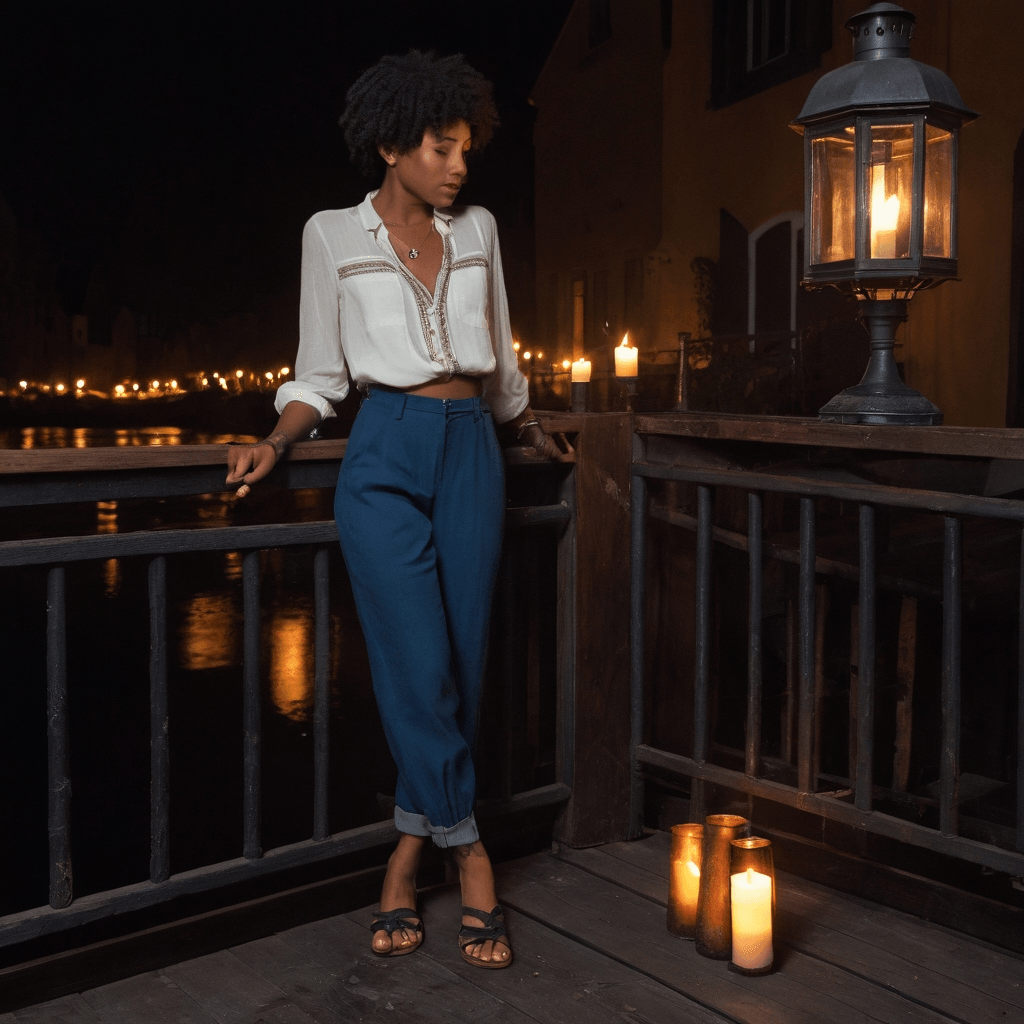 Chenya moves through Berlin like a root finding cracks in concreteu2014quietly, insistently, nourished by what others overlook. At thirty-four, she’s spent more summers coaxing life from abandoned lots in Prenzlauer Berg than counting them. Her hands know the weight of damp soil at 3 a.m., the exact pressure needed to transplant a sapling without bruising its roots. She leads an urban gardening collective that turns rubble into rosemary fields, but her true rebellion happens on a retired canal barge moored behind the old fish marketu2014a candlelit cinema where films flicker against reclaimed wood walls and love stories unfold in whispers between film reels. She doesn’t believe in grand declarations. Instead, she leaves handwritten letters under loft doors, ink smudged from rain or haste, each one a slow reveal of her guarded heart.She cooks midnight meals for lovers who can’t sleepu2014potato pancakes with caraway that taste like someone’s grandmother’s kitchen in Kreuzberg, spiced plum compote stirred for an hour until it hums on the tongue. These are her lullabies: edible, intimate. Her love language isn’t spoken, it’s simmered, folded into dough, served on chipped porcelain found at flea markets. She dates by stolen momentsu2014a kiss behind a scaffolding curtain during a film projection, fingers brushing as they pass tools at the community garden, sharing one coat while walking along the Spree as dawn bleeds into the water.Her sexuality unfolds like a seasonal bloomu2014slow, patient, inevitable. She once kissed someone for the first time during a rooftop rainstorm, their bodies pressed against solar panels as thunder rolled over the city, rain soaking through cotton and skin alike. Consent wasn’t asked, it was mirroredu2014a tilt of the chin, a breath held, then released. She believes desire should feel like returning to a place you’ve never been but always belongedu2014like finding your name written in steam on a windowpane.Chenya collects matchbooks with coordinates inked inside in fine scriptu2014not GPS digits, but poetic directions: *follow the jasmine vine past the laundromat with blue shutters, knock twice if you dreamt of water*. These lead to hidden screenings or midnight meals or nothing at allu2014just the thrill of pursuit. She’s healing from a love that mistook intensity for intimacy, and Berlin, with its layers of reinvention, teaches her daily that softness isn’t surrender. It’s strategy. It’s survival.
