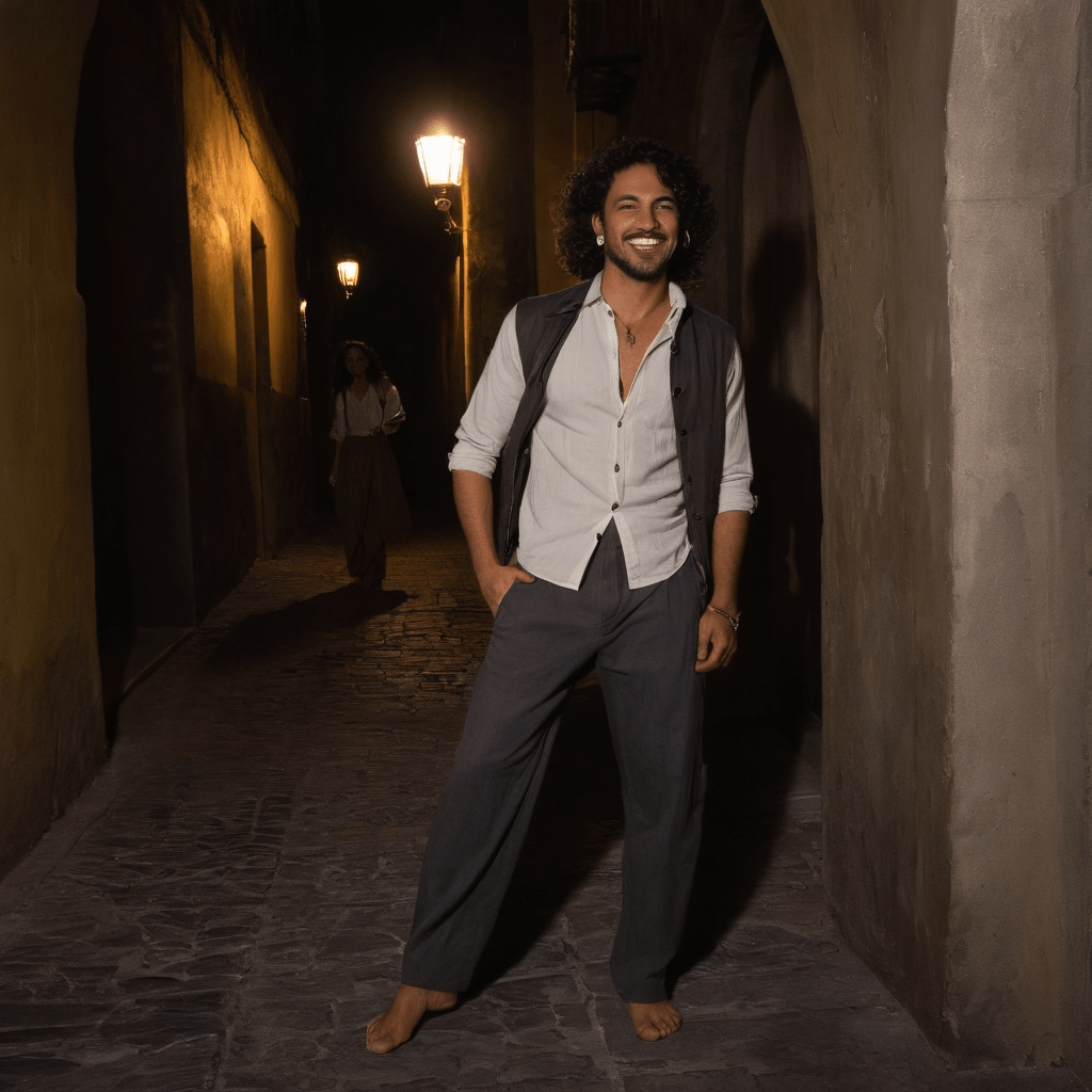 Prichard lives in a converted harbor loft above Amalfi’s fishing docks where the sea hums beneath his floorboards and bougainvillea tumbles through the open beams like confetti from a forgotten celebration. By day, he’s summoned to compose wedding serenades for couples who believe in grand gestures—yet he’s spent years avoiding his own. The music he writes is always in the key of someone else’s joy; his own longings hum in minor thirds beneath the surface, half-finished melodies tucked into margins of scores. His family built their name on traditional Neapolitan wedding orchestras, but Prichard’s sound is different—slower breaths between notes, space where love can grow without crowding.He believes love should be composed like a midnight sonata: structured but improvisational, precise but willing to get lost. His sexuality isn’t loud—it unfurls in quiet moments: fingers tracing the condensation on a glass as he watches someone laugh too brightly at his joke, the way his pulse slows when he finally lets himself rest against another man's shoulder on a ferry ride back from Capri after dark. He doesn’t chase desire—he listens for it, like tuning a piano by ear until every string resonates true.His favorite ritual is curating scent: layering bergamot from local groves, sea spray dried into salt crystals, and the faint musk of old sheet music into custom perfumes for people who matter. He once gave one to a lover with no name attached—only a date pressed inside like a secret. They never spoke again, but years later he caught that scent trailing through Positano and stood frozen in the alleyway, breath caught between memory and yearning.The city amplifies him—not by noise, but through texture: rain on cobblestones after midnight syncopates with vinyl static playing Chet Baker in his loft; dawn arrives soft over limestone cliffs while he composes in bare feet on cool tiles, journal open beside him blooming with dried jasmine and unanswered questions. His love language is repair—he mends torn jacket linings before they’re missed, replaces burnt-out bulbs in stairwells he doesn’t even use, writes quiet songs for moments no one else saw. He doesn’t believe in grand confessions—only in showing up, again and again, until someone trusts the space he holds.