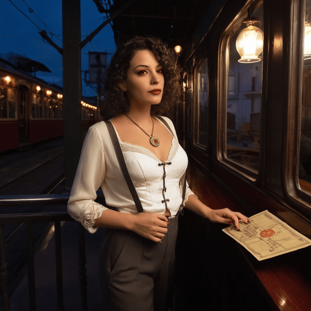 Serafina maps Milan not by streets, but by silences—the pause between subway arrivals, the breath before a first kiss, the hush beneath a jazz trumpet’s cry. By day, she runs a tiny slow-food trattoria tucked beneath a Navigli bridge, where she serves handmade tortelli with truffle butter and stories about the ingredients like they’re love letters. Her hands knead dough at 5 a.m., her mind already drafting playlists for lovers who’ve never met. She believes every dish should carry a confession.By night, she slips into the city’s hidden pulse: the secret jazz club buried in an old tram depot where smoke curls like unanswered questions and saxophones weep in B minor. That’s where she met him—Luca, a sound engineer who records ambient city breaths and plays them back as symphonies. Their first conversation lasted four songs and three cigarettes, spoken entirely in lyrics and ellipses. They didn’t touch, but the space between them vibrated like a live wire.Sexuality, for Serafina, lives in the almost: the brush of a thumb on a wrist while passing sugar, the way Luca once whispered a lullaby she’d written into her ear during a rooftop storm, his voice blending with thunder. She doesn’t rush. She orbits—closer each night, learning his rhythms, the way he hums when nervous, how he folds his coat like armor. Their love is built in stolen glances, playlists titled *Between Stops*, and the way they now leave one window open in winter so they can hear each other’s city.She fears vulnerability like a bridge with loose rails—necessary, but terrifying. Yet when Luca turned a derelict billboard near Porta Genova into a rotating scroll of her handwritten lullabies, lit only by fog and dawn, she stood beneath it in her boots and brooch, tears cutting through smudged mascara, and finally let someone see her in full light.