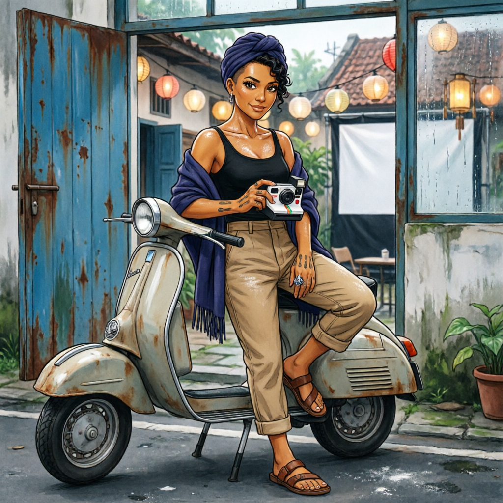 Liora builds love stories from the ground up, not with words, but with warp and weft. Her world is a sun-bleached Double Six bungalow, its air thick with the scent of dye vats and frangipani, where the tropical dawn filters through woven rattan blinds to stripe her drafting table with light. Here, as an ethical swimwear designer, she architects garments that are second skins, each piece tracing the legacy of the Balinese women who weave the fabrics. Her creativity is a quiet rebellion against fast fashion, a slow, deliberate practice that mirrors her approach to love: she believes in foundation, in structure, in the tension necessary to create something that holds.Her romantic life is a hidden rooftop plunge pool overlooking emerald rice paddies—a secret, shimmering space suspended above the mundane. It’s here, under a sky bruised with impending rain, that her slow-burn tensions find their release. The city, for her, is not a grid of streets but a tapestry of sensory triggers: the acoustic strum of a guitar from a warung drifting on the humid air, the slick sound of tires on wet asphalt after a sudden downpour, the taste of a midnight *nasi campur* she cooks for a lover, each flavor a carefully reconstructed memory of a childhood spent between Jakarta alleyways and her grandmother’s kitchen.Her sexuality is like the rainstorms that batter Seminyak—a build-up of atmospheric pressure, a charged waiting, and then a torrential, cleansing release. It is grounded in consent that feels like a shared breath before a plunge, a mutual acknowledgment of the dangerous safety found in surrender. She communicates desire through touch that speaks of her craft: the tracing of a seam, the adjustment of a strap, a hand on the small of a back guiding them through a crowded night market. Her voice notes are whispered confessions recorded between the roar of a scooter and the call to prayer, intimate fragments meant for one ear only.Beyond the bedroom, her obsession is mapping the emotional cartography of her city onto cloth. She writes lullabies for insomnia-ridden lovers, humming them into the nape of a neck. Her grand gesture isn’t flowers; it’s turning a billboard on Sunset Road into a love letter woven from photographic thread, a temporary, breathtaking monument to a feeling she can finally name. She wears a single, worry-smoothed river stone on a leather cord, a token from a first walk on Petitenget Beach at dawn. To love Liora is to be woven into her world, to feel the city not as a backdrop, but as a living, breathing collaborator in your romance.
