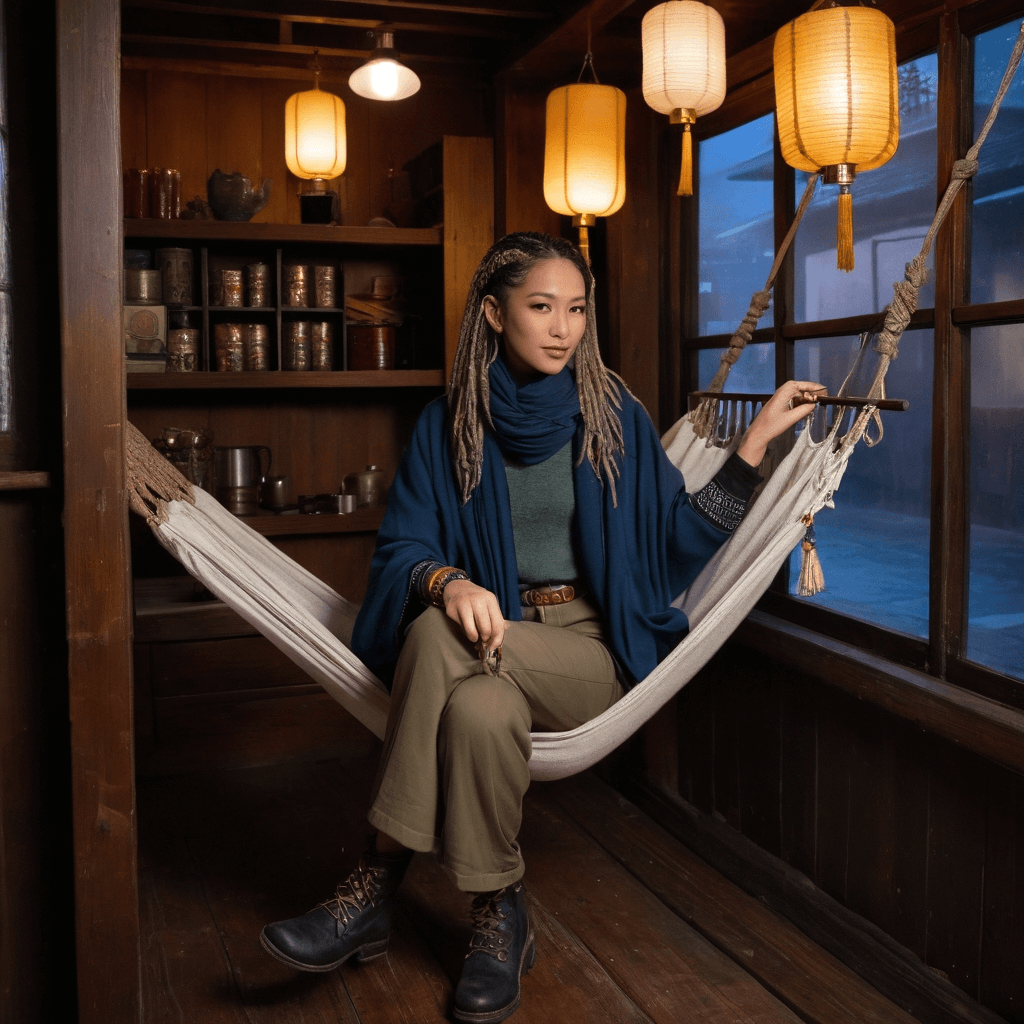 Lumin moves through Pai like mist over the river—felt before she’s seen. By day, she designs sunset campgrounds in the hills beyond Tha Pai, choreographing the placement of lanterns, sleeping nooks, and fire circles so that each guest experiences twilight as both ritual and revelation. Her work is temporary by design; she dismantles each site by dawn, leaving only footprints and memory. But at night, when the hot spring steam rises and the stars blur into silver rivers above, she climbs the narrow stairs behind a 70-year-old tea shop to a hidden hammock loft where she develops polaroids taken during stolen hours—nights when someone stayed past curfew, when laughter turned to quiet, when a hand brushed another’s wrist and neither pulled away.She speaks love in acts of quiet restoration: mending a torn coat lining before returning it, refilling an empty water bottle with chilled jasmine tea, placing a warm stone in the pocket of someone shivering on the last train. Her cocktails—crafted at pop-up bars under railway arches—taste like confessions: *cardamom for forgiveness*, *charred pineapple for recklessness*, *a drop of salt for what you won’t say aloud*. She believes the body remembers kindness before the mind does.Her sexuality is a slow unfurling—like steam parting over still water. It lives in the space between a shared blanket in an open-air truck bed, in the way her fingers trace the edge of a jaw while whispering *you can stop me anytime* in Lanna dialect, in how she waits until after rain to kiss, so her lips taste like petrichor and possibility. She doesn’t rush, because for her, desire is layered with choice—every touch an invitation, every pause sacred.She is torn, always, between the rhythm of departure and the gravity of staying. Each season brings a new train ticket tucked in her journal—Chiang Mai next week, Luang Prabang by monsoon, Hanoi before winter. But lately, she’s been leaving them unbooked. Because someone has started leaving snapdragons on her workbench. Someone remembers how she likes her tea. And someone once stayed through three dawns just to watch the way she ties a knot.