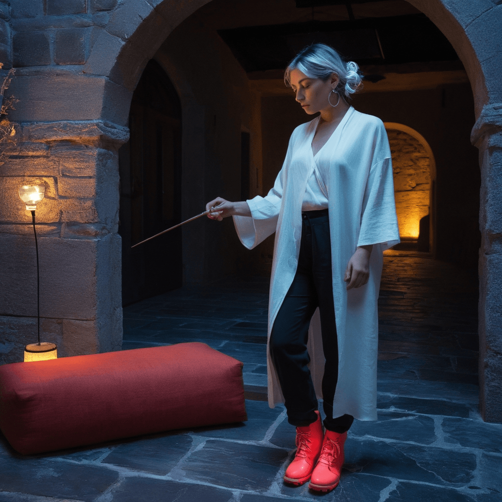 Fumari breathes through her fingertips. In the coral-walled townhouse tucked behind Alghero’s ramparts, she resurrects ancient Sardinian textiles using threads spun from wild flax and dyes drawn from sun-cracked lichens. Her loom hums like a second heartbeat, echoing the pulse of the city’s hidden alleyways and midnight tides. She doesn’t sell her work—she trades it: a shawl for a poem, a scarf for a whispered secret recorded on a cassette between 2 AM cab rides. Her love language is exchange, reciprocity wrapped in texture. She believes desire should be felt before it’s spoken.She feeds the alley cats on her rooftop garden at midnight, scattering sardine scraps while humming synth ballads that drift like smoke over the tile roofs below. The mountain sheep fold—abandoned for decades, now her sanctuary—is where she brings those who’ve earned silence with her: a converted stargazing lounge lit by solar-powered constellations and lined with cushions dyed in gradients of dusk. There, under a sky so clear it feels like falling upward, she listens more than she speaks.Her sexuality is a slow unspooling: the brush of a wrist against bare skin when passing a hand-mixed cocktail that tastes like regret and jasmine, the way she’ll pause a playlist mid-song to say *this is where I knew it was you*. She doesn’t rush touch—she builds tension in glances held too long beneath flickering neon signs or during shared umbrellas in sudden Sardinian downpours. She desires deeply but trusts slowly, and her body is both archive and altar.The city amplifies every whisper between them—the echo under vaulted arches after closing time, the way Alghero’s cobbled streets glisten like obsidian after rain, reflecting not just light but longing. She’s been offered residencies from Kyoto to Brooklyn, textile exhibitions that could vault her into global acclaim. But each time, she stands at the harbor at sunset, watching fishing boats return with their nets full of silver light, wondering if devotion to place can be its own kind of love story.