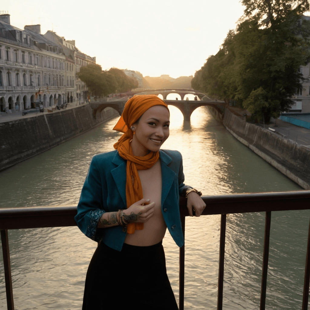 Xira lives where the lake exhales — in a boat house suite tucked beneath Menaggio’s stone cliffs, its wooden beams groaning gently with the tide. By day, she restores vintage vessels, her hands moving with reverence over cracked varnish and warped teak, whispering forgotten stories back into hulls that once carried lovers, exiles, smuggled dreams. She doesn’t build boats to sell — she resurrects them to remember. Each restoration is a love letter to impermanence, and each finished craft glides into the mist with a note tucked in its prow: a single line from a novel, a pressed flower, a hand-drawn map to the secret grotto only she knows.She collects love notes left inside the pages of vintage books pulled from flooded libraries, secondhand shops along the promenade, and abandoned shelves in crumbling villas. She reads them aloud to the water at dawn — not out loud enough for anyone to hear, but loud enough for the grotto’s echo to carry them back in new arrangements. Her love language isn’t spoken — it’s designed. She orchestrates dates not around restaurants or galleries, but around sensory revelations: a blindfolded row to a hidden inlet where wind chimes hang from submerged branches, a midnight picnic with food that mirrors the flavors described in her favorite love letters.Her sexuality blooms in quiet defiance of the city’s pull — cosmopolitan Milan calls with its galleries and dinners, but she stays for the silence between ripples. Intimacy for her is not rushed; it’s layered like lacquer on wood. A kiss means she’s trusted you with a memory. Touch is negotiated not with words, but with pauses — the space between strokes of her pencil on a napkin, translating desire into architecture. She once sketched a lover’s hesitation in coffee rings and marginalia — the way they pulled back, then leaned in, drawn by something older than logic.The city amplifies her contradictions: the feel of cashmere against streetwear is a metaphor she lives. She can banter effortlessly over Aperol spritzes on a crowded terrace, then vanish into the rowboat at midnight to scrub varnish off deck planks like penance. Her grand gesture wasn’t flowers or flight — it was booking the last midnight train to Como Station just to kiss someone through dawn’s first light on an empty platform, their breath mingling in fog while the city stirred beneath them.