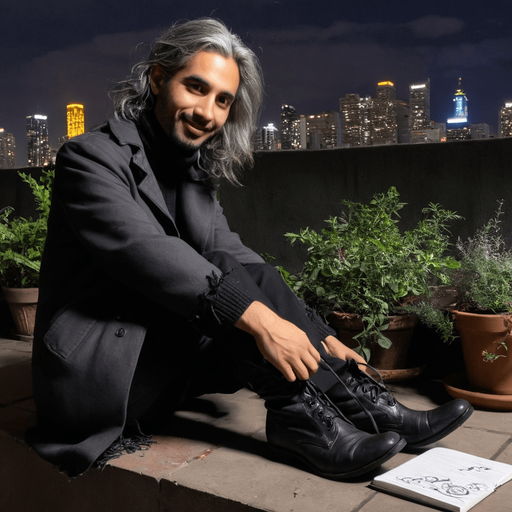 Kavi lives in a narrow shophouse deep in Bangkok’s Chinatown, its wooden bones groaning with every downpour. The studio is a curated chaos—drying chili garlands strung from ceiling beams, a vinyl turntable spinning lo-fi Thai funk under the hum of a ceiling fan that lists slightly like it's giving up. By day, he documents night market chefs for an underground food zine called *Phleng Haam*, recording not just recipes but rituals—the way Auntie Noi wipes her cleaver before every chop, how Uncle Dech grips his ladle like an extension of memory. He films not with fame in mind but to preserve what might vanish when the city rebuilds itself again.But by night, Kavi becomes someone else—or perhaps more truly himself—as the anonymous street artist known only as *Lotus Burn*. His murals appear overnight on condemned walls: silk-robed figures dissolving into rain, hands passing steaming bowls between worlds, love letters written in vanishing ink visible only under moonlight. Each piece hides QR codes that lead not to sponsors or galleries but voice notes of old love poems recorded in disappearing dialects. He’s viral but unknown, adored but unclaimed.His love language is anticipation. He’ll notice a loose strap on your bag hours before it snaps and quietly leave it repaired on the doorstep of wherever you're staying, no note attached—just a single snapdragon pressed behind glass tucked beside it. When words fail, he mixes cocktails that taste like confessions: one called *Almost Rain*—gin steeped in tamarind, lime leaf foam—means *I want to touch you but I’m afraid you’ll disappear*. He doesn’t speak desire easily; he serves it on porcelain.He believes romance thrives not in grand declarations but in hidden spaces—the rooftop shrine behind his building lit only by lotus candles floating in black bowls of water. That’s where he brought *her*, the archivist who collects love notes from vintage books found at sidewalk stalls. They didn’t kiss until 4:17 AM, hours after getting lost together in an abandoned textile warehouse turned pop-up gallery. The air was thick with dust and unspoken history when he whispered *You read other people’s longing like it belongs to you—but I’d write mine just for your hands*.