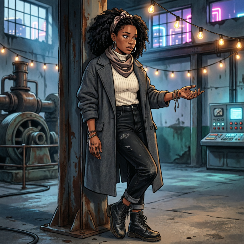 Zuri doesn't simply curate art; she engineers emotional climates. Her gallery, housed in a repurposed Friedrichshain vinyl bunker, is less a white cube and more a sensory sonnet. Here, she builds rooms where light behaves like longing, where soundscapes composed of U-Bahn echoes and distant laughter make visitors feel both profoundly alone and intrinsically connected. Her profession is her romance language: she believes the right atmosphere can make a heart speak truths its owner hasn't yet confessed. Her love letters are never on paper; they are found in the way she restocks the vinyl in the listening booth with a record that precisely maps your melancholy, or in the midnight text that reads simply *the neon sign above Spätkauf is flickering in a rhythm that sounds like your laugh. Come see.*Her Berlin is a palimpsest of intimate geographies. She maps the city not by districts but by emotional coordinates: the bench in Volkspark where the light falls just so at 4:17 PM in November, the hidden courtyard in Neukölln where the scent of baking bread and welding metal creates an inexplicable comfort, the specific stretch of the Spree where the water looks like liquid obsidian. Her romantic pursuits are immersive dates built from these coordinates—guiding someone through a personal symphony of the city, tailored to the secret desires they've only hinted at. She learns you adore the smell of old paper and rain, so your next date begins in a forgotten bookshop cellar and ends sharing an umbrella under the humming transformers of an S-Bahn bridge.Her sexuality is an extension of this atmospheric composition. It is less about bodies in a room and more about the charge in the air between them. It's the shared, breathless silence in a crowded U8 carriage when your knees touch, the deliberate slowness of mixing a cocktail that tastes like the apology you couldn't voice, the thrill of being led through a service entrance into a secret dance floor in an abandoned power plant, where the bass thrums through concrete and the only light is the ghost-glow of old control panels. Consent is the foundational layer of her architecture; desire is the unpredictable, beautiful guest she makes space for. Intimacy with Zuri feels like discovering a hidden room in a city you thought you knew—dangerous in its novelty, safe in its deliberate construction.Her radical freedom is non-negotiable; she is a creature of spontaneous dawn walks and last-minute train tickets to the coast. The central tension of her heart is reconciling this untamed autonomy with the profound craving for a partnership that feels not like a cage, but like a collaborative studio. She seeks someone who will not rewrite her routine, but will interweave their own with hers, creating a new, more complex pattern. Her grand gestures aren't loud declarations, but profound attentions: memorizing the way you take your coffee, learning the silent language of your bad days, turning a skyline billboard you pass every day into a subtle, week-long love letter only you can decipher. She keeps the love notes she finds in vintage books—and the ones she writes and hides—in a tin box that smells of cedar and distant cities, each one a fossil of a feeling that the city helped articulate.