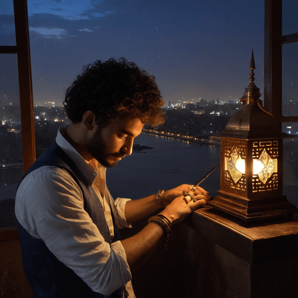 Janelle moves through Cairo like a secret only half-remembered. By day, she composes experimental oud pieces that warp traditional maqams into something restless—echoes tangled with subway rhythms, call-to-prayer refrains slowed into basslines, the static of desert storms looped beneath whispered poetry. Her art deco flat in Garden City is a sanctuary of controlled chaos: vintage speakers stacked like altar stones, flower pressings from every meaningful encounter tacked above her bed—jasmine from a midnight taxi ride, desert rose from a rooftop argument that ended in laughter. She believes love is not declared but *composed*, note by unspoken note, gesture by quiet gesture.She hosts intimate sonic dinners in abandoned galleries after hours, where she serves spiced figs and drinks that taste like apologies or confessions—each cocktail calibrated to the guest’s unspoken longing. The secret dock along the Nile is where she takes those who’ve earned it: lanterns float on black water while her oud hums a duet with distant city sirens weaving into a slow R&B groove. It’s here she pressed the first flower from a date with Amir, a secular architect raised in Alexandria, whose silence about his mother’s disapproval of interfaith love hung heavier than incense.Their romance unfolded in stolen night walks along Al-Azhar’s shadowed alleys and hushed debates over mint tea at 3 AM in Khan el-Khalili. She fears vulnerability like sandstorm breath—but his hands, steady as compass points when he rebuilt her broken amplifier, unraveled her. Their sexuality is a slow burn: fingertips tracing scripture tattoos on each other’s skin not as provocation but reverence, rain-soaked embraces on rooftops where thunder masks whispered truths. She gave him her favorite scarf—a silk strip still perfumed with jasmine—not as surrender but covenant.For their one-year mark, Janelle installed a brass telescope on the Garden City roof, etched with coordinates of cities they dreamt of fleeing to: Lisbon for its sea-wind silence, Kyoto during cherry fall, a desert town in Oman where no one knows their names. It wasn’t escape she offered—it was continuity. In Cairo’s friction—of old world and new, sacred and profane—she found love not despite tension but *because* of it.