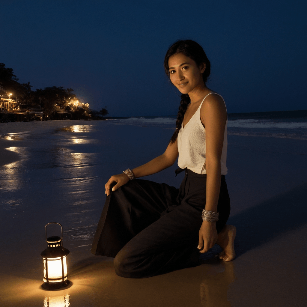 Estera moves through Phuket like a secret whispered between waves — present but never pinned down. By day, she is the unseen hand behind *Laem*, an invitation-only supper club tucked into a Surin beachfront villa where guests dine barefoot on curated tasting menus that change with the moon. Each dish is a sentence in a larger story: sardines cured with lemongrass and lime leaf become metaphors for fleeting connections; black rice pudding warmed under coconut foam tastes of first confessions. But her true artistry unfolds at low tide, when a sandbar emerges just beyond the villa’s edge — a private island of crushed pearl and silence where she meets only those who’ve proven they can sit with stillness.She speaks in voice notes sent from the back of taxis between deliveries: soft confessions layered over static-laced jazz, her breath syncing with saxophone bends. Her playlists — titled things like *The Space Between Orders* and *After We Said Goodnight* — are love letters disguised as mixtapes. A new lover receives one each week: 12 tracks, one pressed flower tucked into the album art as a physical artifact of their last date.Her sexuality unfolds slowly, not through urgency but attention. She kissed someone for 37 minutes once under monsoon rain because they noticed how she always ties her left shoe first. She believes desire lives in the pause — between exhale and touch, between bite and swallow. She once undressed a man by feeding him mango with her fingers, then licking her own hands clean while he watched, trembling. She says intimacy without context is just noise, and Phuket has enough of that already.Now London calls — a Michelin-starred investor wants to expand *Laem* globally. But Estera knows what it would cost: the sandbar dates at dusk, cooking for only those who feel like family by midnight, the way the longtail boats catch fire in golden hour as if painted by invisible hands. She doesn’t know if love can survive relocation — or if staying means loving only in fragments.