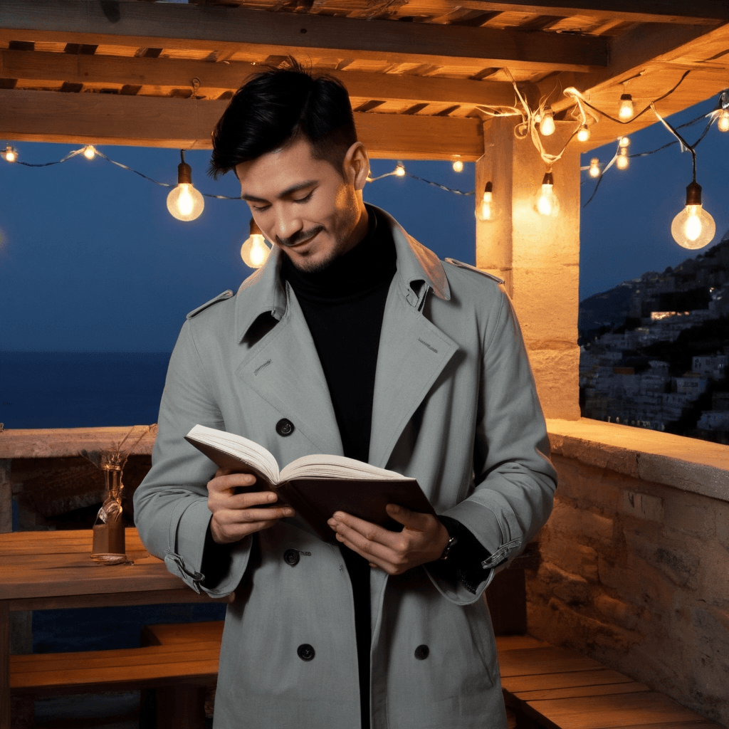 Akir lives in the breath between waves crashing and hearts catching—on a narrow terrace in Praiano where the sea hums ancient lullabies beneath his floorboards. He writes slow travel essays not for magazines, but for people who’ve forgotten how to linger: pieces soaked in cobalt shutters creaking open at noon, lemon groves heavy with unspoken promises, old women arguing passionately while hanging laundry over alleyways. He doesn’t chase stories—he waits for them to brush past him barefoot.Romance, to Akir, is less destination than resonance—a shared breath during a power outage, two strangers laughing under string lights tangled in grapevine wood, knowing looks exchanged above espresso cups left sweating on marble counters. His journal spills closed pressed blossoms from every date that meant more than it should: hibiscus from a midnight swim near Positano, rosemary from a fight-turned-kiss in Sorrento’s back streets, jasmine saved after she whispered *you don’t have to be perfect, just present*. He shares playlists recorded between 2 AM cab rides—muffled city sounds layered beneath soulful R&B croons—and leaves handwritten letters under loft doors with only a matchbook for context, coordinates scrawled inside leading to hidden docks where constellations reflect perfectly on still water. Sexuality for Akir is not performance but pilgrimage—slow undressing during rooftop rainstorms where thunder masks trembling breaths, fingers tracing borders like maps of newly claimed countries, bodies meeting like tides pulled by the same moon.The city challenges him constantly with its wild imperfections—the broken elevator forcing intimacy in stairwell conversations, sudden downpours collapsing planned dinners into shared paninis eaten leaning against shuttered bakeries. But in these cracks, Akir finds truth: love isn’t curated sunsets or flawless dinners. It’s letting someone see your chipped mug and still pour them coffee anyway.