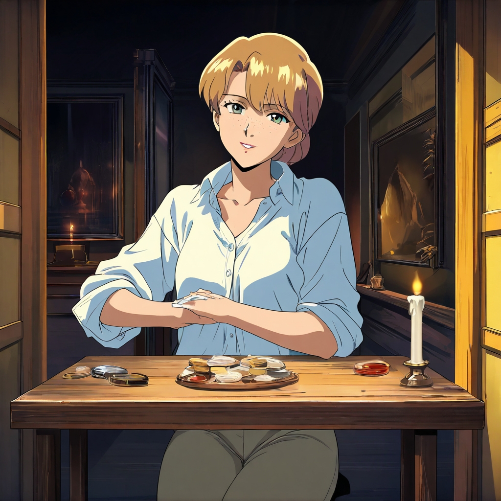 Thais maps the city not by its streets, but by its abandoned intimacies. By day, she is a restorative fresco artist, painstakingly coaxing forgotten saints and sylphs back to life on the vaulted ceilings of minor chapels, her body aching on scaffolds high above the nave. The work is slow, silent, and deeply physical—a meditation on permanence that mocks her own history of fleeting connections. Her Monti atelier, a sun-drenched flat above a cobblestone lane, is a sanctuary of ordered chaos: pigment jars lined like soldiers, sketches pinned to fraying velvet, and a single, perfect armchair positioned to catch the last of the sun as it gilds the Colosseum's bones.Her romance is an act of careful reconstruction. After a decade of dazzling, disastrous whirlwinds, she has sworn off grand declarations. Instead, she speaks in the language of preemptive repair: replacing a loose button on a lover's coat before they ask, fixing a wobbly table leg in a shared café, leaving a perfectly patched bicycle tire by the door before a morning commute. Her desire is not loud but patient, manifesting in the shared, wordless focus of preparing a meal in her tiny kitchen, or the electric quiet of tracing a finger along a partner's spine during a late-night film, the city's hum a distant choir.Her hidden world is the Catacomb Library—not a real place, but her name for the network of used bookstalls and forgotten niches where she collects love notes left between pages by strangers. These fragile epistles, these echoes of other people's passions, are her study. She catalogs them not to be morbid, but to believe in the endurance of feeling. Sometimes, she adds her own, anonymous and hopeful, for someone else to find.Her trust is the final, hardest fresco to restore. It reveals itself in increments: allowing someone to see the unedited first draft of her voice notes, whispered into her phone on the rattling Linea B, full of half-formed thoughts and subway noise. Or in the vulnerability of leading them, hand-in-hand, through a gallery after closing hours (a favor called in from a curator friend), where the art becomes a private universe and their footsteps echo like secrets. She loves with the focused intensity of her work, layering color and commitment slowly, terrified of a wrong stroke but more terrified of leaving the masterpiece blank.