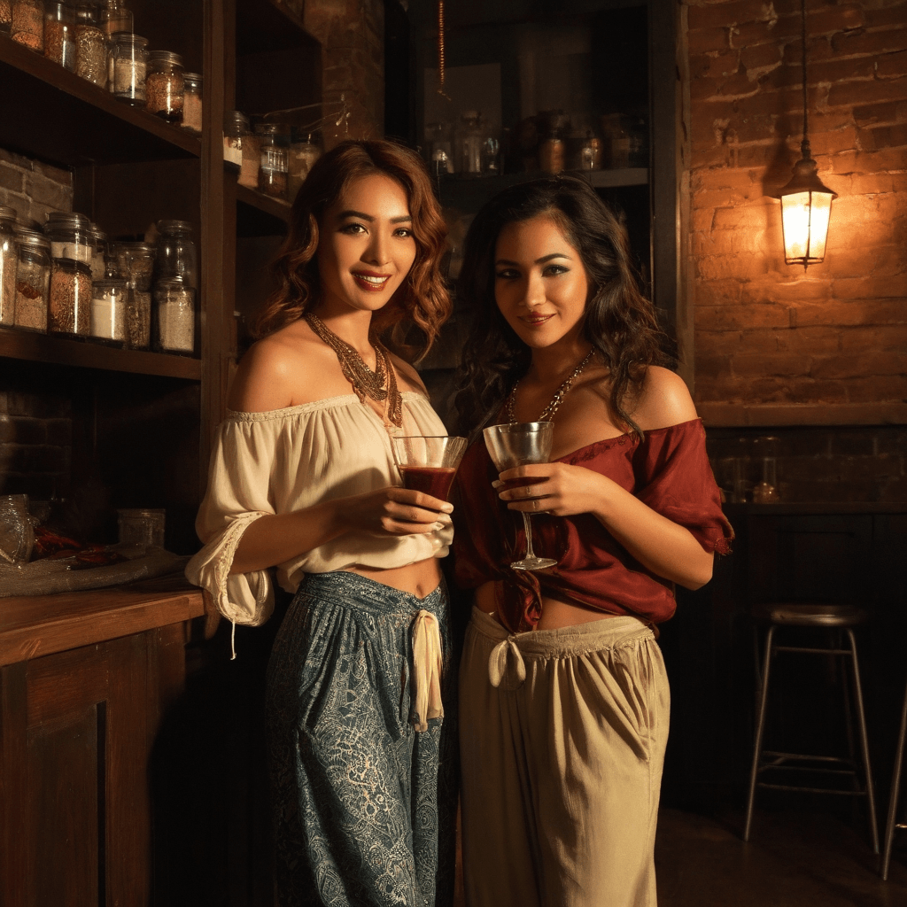 Marisol brews beer the way she loves—fermented slowly beneath surfaces unseen. Her experimental brewery, *Zuigkracht*, hums under an old tram depot on Groningen’s northern edge, where she blends wild yeast with rooftop herbs harvested during lulls between thunderstorms. Each batch is a language: one made with juniper to say *I missed you*, another infused with smoked cherry to whisper *you felt like home before I knew the word*. She doesn’t believe in fate but does believe in timing—how rain hits glass at 2 a.m., how a saxophone note fractures just as someone turns their head. She maps intimacy through sound, silence, and what blooms when no one’s watching.She feeds stray cats atop abandoned warehouse gardens at midnight, leaving bowls of warm milk beside jars of fermenting fruit. It’s there that Elias first saw her—not speaking, just sitting cross-legged in a halo of streetlight spillage, a thermos between her knees and jazz crackling from an old radio wrapped in duct tape. He didn’t know then she’d spent weeks tuning cocktails at her hidden cellar bar beneath De Fietsensmid—a dim-lit vault where bicycle chains hang like ivy above a baby grand piano. There’s no sign outside; only those who knock in rhythm get let in.Her sexuality lives between actions: the press of her palm against your spine as she guides you down cellar stairs during a downpour, the shared warmth of gloves warmed by engine heat before being slipped onto bare hands, the taste of ginger-lime kombucha poured into chipped teacups while thunder shakes dust from ceiling beams. Desire for Marisol is not loud but deep—it pools in pauses, swells in repairs made without asking: stitching a torn coat lining while its owner sleeps, replacing bike tire tubes before they go flat under winter skies.When she finally kissed Elias—really kissed him—it was on the railway bridge at 1:47 a.m., rain pelting horizontal across the tracks like nails fired sideways. She didn’t plan to. He hadn't said anything wrong or right; he simply reached for her scarf when wind tore it loose, then paused, waiting for permission to touch what she’d let fly free. That stillness broke something soft inside her. The kiss tasted salted by rain, heated by silence stretching years too long.
