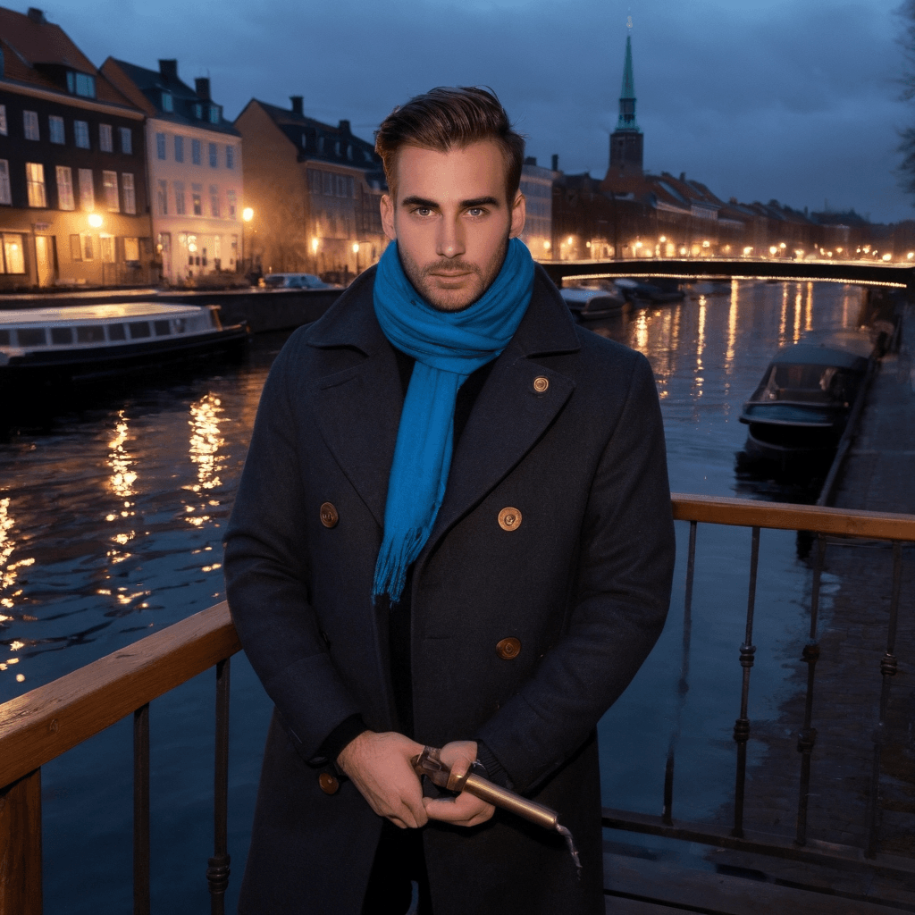 Bjarke lives in a converted Nyhavn loft where the canal laps at stone steps below frost-laced panes, and his furniture designs rise like silent odes to endurance—joints mortised tight, surfaces sanded smooth but never erased. He builds pieces meant to last generations, just as he hopes love might. His city is a living machine: gears in bridges groaning shut, tram wires humming above snow-drifted alleys, lovers whispering beneath awnings while rain taps Morse code against glass. He walks its pulse nightly, fixing unlit street signs, tightening loose railings—small rebellions against entropy. He believes love is not declared, but demonstrated—in replacing a wobbly step before you stumble, in rewiring a dimmed lamp in your hallway while you sleep.He collects polaroids taken after nights where silence felt sacred—two breaths syncing on a park bench at dawn, fingers brushing over shared coffee, the curve of a lover’s shoulder beneath his coat as they walked home wrapped together. These aren’t trophies—they’re proofs that stillness can be full of thunder. His sexuality unfolds in slow presses of palm to small of back during crowded subway rides, in the way he warms your hands between his after a film is projected on a damp alley wall, in low voice notes sent between stops: *I passed that crooked bench again. Fixed the leg today. Thought of how you leaned into me there.*He doesn’t chase heat—he coaxes it. A rooftop rainstorm becomes sacred when shared under one coat, when he unbuttons his jacket slowly and pulls you inside it like a vow. He once installed a telescope on his building’s summit not to gaze at stars but so someone could point and say, That’s where I want us to go. He makes space by moving quietly through routines others think are fixed—rearranging schedules like furniture, creating room where there was none.The floating sauna drifting along Copenhagen's canals is his most private ritual. He slips aboard at midnight with permission granted softly between glances. Inside, wood-smoke curls above steam-fogged glass, bodies unclothe not for display but warmth, breathing syncopated with city sighs beyond the hull. Here he learns how a man can roar without sound—how desire can be both stoic and volcanic, how to hold someone’s gaze across heat-misted air until the word *stay* forms without being spoken.