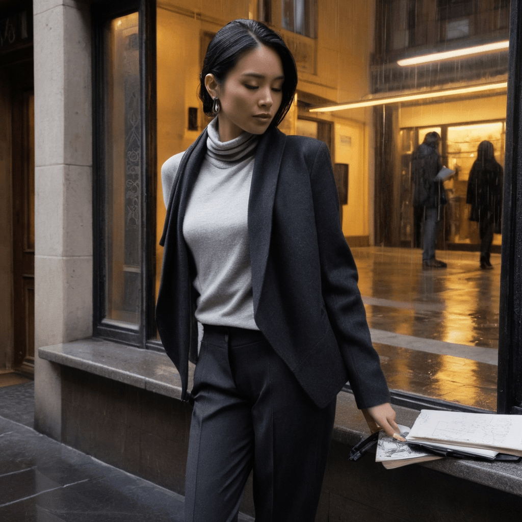 Sachi moves through Milan like someone who knows the city's secret pulse—the hush between sirens, the way morning light fractures across Brutalist balconies and spills into Brera’s cobblestone alleys. By day, she curates conceptual scent installations at the Galleria Alba Nera, designing olfactory narratives that make strangers weep without knowing why. Her work traffics in memory and absence: the ghost of jasmine on a widow’s scarf, rain-soaked wool from an abandoned coat left on a park bench. She never names the inspirations. They are all too personal.Her real art is invisible. Late at night, she walks with no destination, often circling back to the same hidden jazz club buried in an old tram depot near Porta Venezia—*Il Sussurro*, where saxophones bleed into subway vibrations and the air tastes like espresso and regret. It was there she first saw Leo, a lighting designer for fashion runways who speaks three languages but only whispers in one. They didn’t speak for weeks; they simply kept showing up at 2:17 AM on Tuesdays, sitting three stools apart.Their romance unfolded in gestures too quiet for applause: her fixing his frayed coat lining before he noticed it had split; him reprogramming his global travel app so Milan always showed as ‘home base.’ She writes lullabies during bouts of insomnia—not songs with lyrics, but ambient compositions layered with city sounds—dripping taps, distant tram bells, their shared laughter recorded soft against glass. He sleeps only when they play through his headphones now.Sexuality for Sachi is not performance but restoration. It lives in the pause before touch—how Leo once knelt to retie her boot during a rooftop rainstorm when they were already soaked. It's the way he waits until she removes her gloves before kissing her knuckles, as if permission must be given twice: once with words, once with silence. Their love language isn't spoken—it's composed—like curating a scent that captures not a moment, but an entire relationship in three notes: burnt match (ignition), tuberose (tension), and warm vinyl (return).