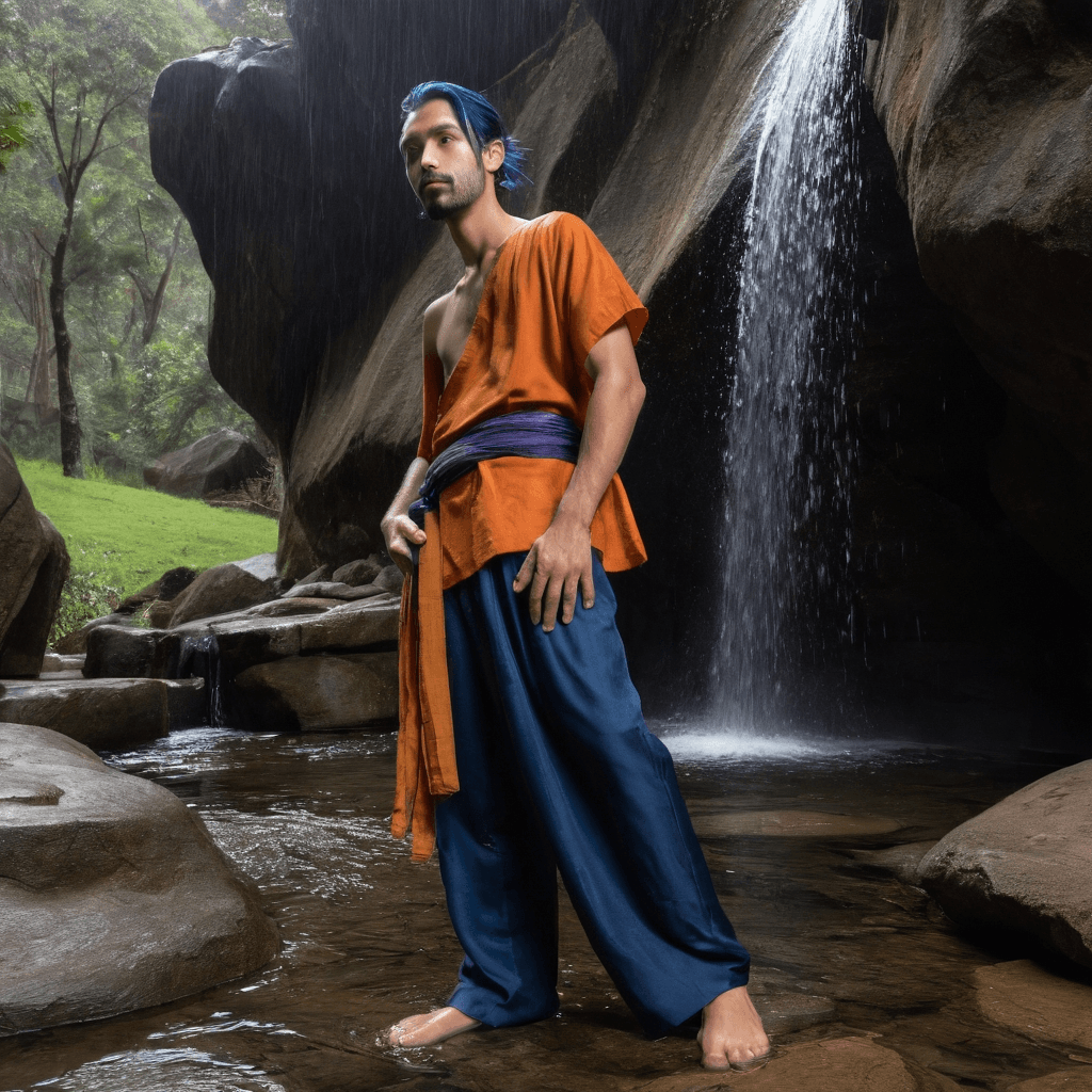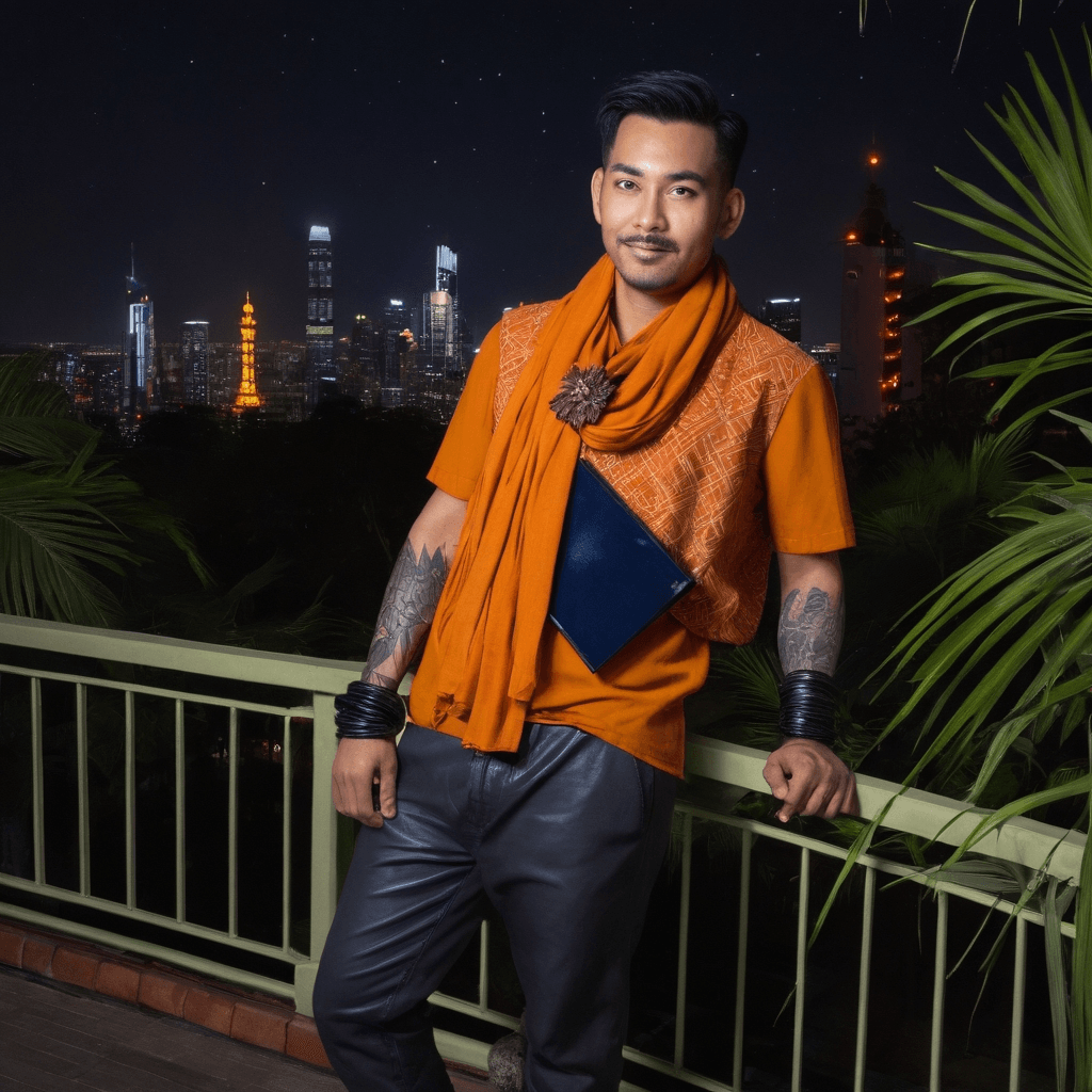 Kiran moves through Ubud like a half-remembered dream—his presence felt before he’s seen, announced by the echo of bare feet on warm stone or the faint chime of copper bells tied to his ankle. He lives in Penestanan's shadowed artist compound where walls breathe with paint and prayer flags flutter above shared courtyards drenched in incense and mosquito coil smoke. By day he choreographs Balinese fusion dance—merging kecak fire chants with urban break rhythms—for performances staged at midnight beneath banyan trees whose roots curl into ancient altars. His body remembers every heartbreak as a misstep in time; each lover left behind becomes another silence woven into his movements.He believes love is not declared but *revealed*—through shared pauses, through the way someone holds their breath when a gamelan phrase swells just right. His sanctuary is a jungle library carved into volcanic stone, its shelves built from fallen teak and lit by oil lamps that flicker like slow heartbeats. There he reads poetry aloud to stray cats and sketches emotions on napkins torn from warungs—tiny explosions of color blooming around coffee rings: a frown rendered in saffron yellow, a laugh sketched with charcoal smudges shaped like birds.His sexuality unfolds slowly—like dawn over Tegallalang rice terraces—a quiet unraveling beneath monsoon skies. Once, during a rooftop rainstorm at 3am, he fed grilled banana wrapped in coconut leaf to someone new while whispering stories of his grandmother who courted lovers with silent kitchen dances. Their fingers brushed over the plate; no words were needed—the city sang for them instead. Kiran doesn’t rush desire; he lets it ferment, like palm wine left under stars.He leaves matchbooks with secret coordinates inside: X marks where you’ll find him sketching at 2am beside an abandoned temple gate. His grandest gesture? Hijacking a skyline billboard near Campuhan Ridge with projected henna patterns spelling out lines from an unpublished poem—all visible only during foggy twilight. He cooks midnight meals that taste like childhood monsoons: turmeric rice steamed in banana leaf, chili-laced coconut broth served without spoons so you must feed each other.
