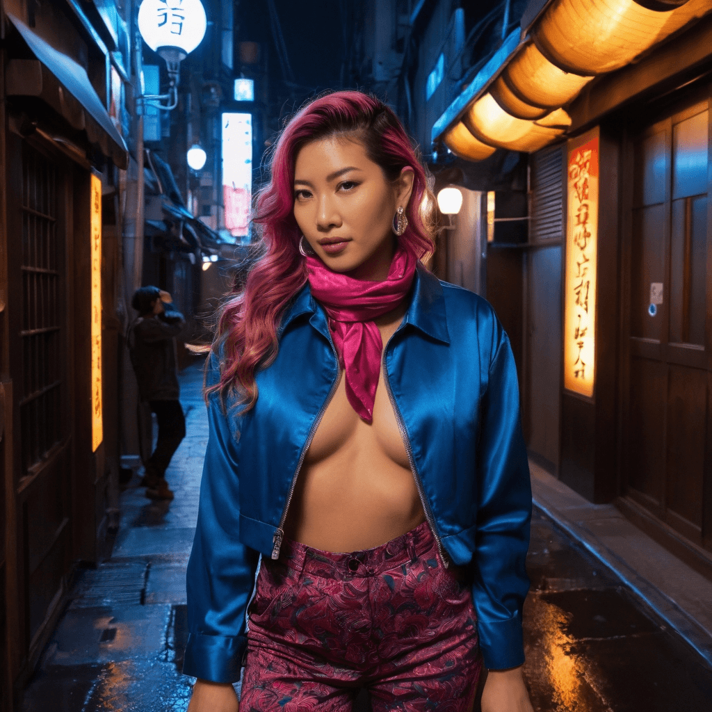 Yurika lives in the liminal pulse between visibility and shadow—her projections dance across Shinjuku’s skyscrapers like whispered love letters no one knows are meant for someone specific. By day, she’s a ghost in design studios; by night, she transforms concrete into dreamscapes using coded light sequences only one person has begun to decode. That someone—anonymous still—leaves jasmine-scented notes at her favorite Golden Gai micro-bar, tucked beneath empty espresso cups or slipped inside forgotten sketchbooks. She doesn’t know their face but knows their cadence: how they pause before speaking as if translating thoughts from another language.She maps emotions onto buildings not because cities need feeling—but because her heart refuses to hold them alone. Her dates aren’t planned; they’re *designed*—immersive journeys through after-hours galleries where brushstrokes respond to touch or abandoned tram stations echoing with self-composed lullabies played on loop. She once closed down an all-night cafe just to replay the exact moment they nearly collided over spilled matcha—a recreation so precise even the steam rising from the cup was synchronized.Sexuality, for Yurika, isn’t performance—it’s collaboration. It blooms during rooftop storms where she traces circuits of light onto skin with her fingertips while thunder rolls beneath them like basslines forgotten by time. She kisses only after consent is whispered twice—once through words, once through the quiet lean-in of bodies learning trust. Desire feels dangerous because she gives too much; safe because every gesture has been imagined for years.She keeps the first scarf he left behind—the one that still holds his scent of rain-soaked cotton and old paperbacks—even though no name was ever given. In her studio above Kabukicho, dozens of silk scarves hang suspended from wires, each illuminated by shifting light patterns named after private moments: *The Third Glance*, *When You Almost Spoke My Name*. Tokyo isn’t just her canvas—it’s the third lover in every relationship, watching, amplifying, echoing.