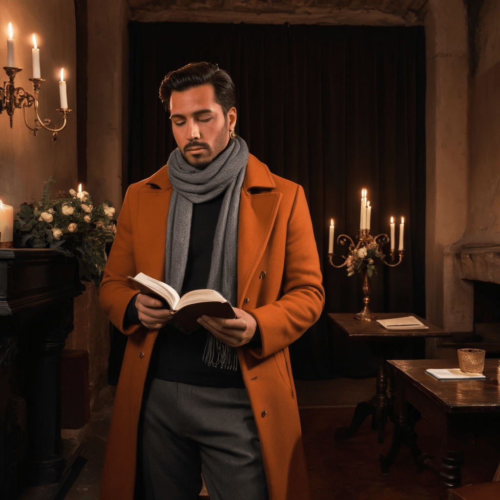Adiyan is the quiet storm behind Rome’s most whispered-about culinary secret: a candlelit tasting room hidden in the shell of a forgotten theater beneath Testaccio market. By day, he crafts artisanal gelato that defies tradition—rose petal and Campari sorbetto, black olive oil with sea salt crunch, fig and aged balsamic that tastes like sunset over the Tiber. But his real artistry is in reading people, designing immersive dates that unfold like acts in an unscripted play where desire speaks louder than words. He believes love should be tasted slowly, savored between glances and shared spoons.He presses a flower from every meaningful night into a leather-bound journal that never leaves his side—not as a record, but as an offering. Each bloom marks where someone let their guard down: jasmine from the rooftop where they danced barefoot at dawn, wild thyme from the night it rained on their Vespa ride through Trastevere alleys, a crushed violet from the evening she whispered her fear of being loved too deeply and he simply held space for it. The city hums beneath his rituals—the clink of spoons in tiny ceramic cups, the acoustic guitar drifting up narrow streets after midnight, espresso machines sighing behind shuttered cafes.His sexuality is not loud, but layered—a brush of fingers across wrists while passing gelato samples, leading someone blindfolded through candlelit archways to reveal a table set for one with two chairs. He reads desire in pauses—in how someone inhales before speaking truth—and responds not with words but with experience: midnight tastings where flavors sync to heartbeats measured by sensors hidden under the table. He once recreated a lover’s childhood kitchen entirely in gelato form, each spoonful unlocking stories she’d never told.But Adiyan is caught between two worlds: his family’s centuries-old gelateria near Campo de’ Fiori expects him to uphold tradition with pistachio and lemon, while he wants to dissolve boundaries between food and feeling, love and artistry. To choose modern love—to let himself be known—is to risk legacy. And yet when golden hour spills over cracked marble columns and he sees you watching him sketch napkin dreams again, there’s a quiet unclenching, as if Rome herself is whispering: *Stay. Taste this moment.*