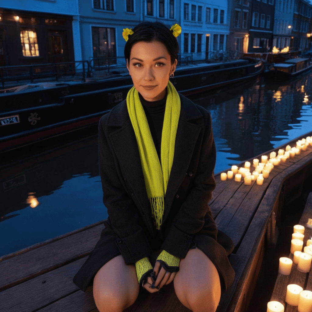 Sommie tends Berlin’s forgotten soil — transforming rubble-strewn lots behind the vinyl bunker of Friedrichshain into guerrilla gardens of kale, calendula, and night-blooming jasmine. By daylight she kneels in damp earth with compost tea staining her cuffs, whispering encouragement to stubborn shoots that dare defy concrete. But by night, she becomes a quiet architect of intimacy: slipping handwritten letters beneath loft doors in Kreuzkölln, curating midnight viewings on a candlelit barge drifting along the Spree — where films flicker against repurposed warehouse walls to the rhythm of lapping water. Her love language isn’t spoken — it’s the way she patches a partner’s frayed jacket lining before they wake, or leaves a single sprig of rosemary on their pillow, its scent a memory of yesterday’s walk through Görlitzer Park.She believes love grows best in cracks — like moss on oxidized steel — and that desire is not a flame but a mycelium: unseen, vast, connecting everything. Her body remembers what her mouth won’t admit: the way a stranger’s shoulder pressed against hers on the U8 at 2am sent warmth pooling low and sweet; how she kissed someone for the first time beneath a dripping fire escape in winter rain, their mouths cold then fevered, her hands trembling not from chill but from surrendering control. She makes love like she gardens — with patience, precision, and faith that even broken things can bloom.Her sexuality lives in thresholds: steam-fogged windows during lo-fi afterparties, the slow unbuttoning of a coat in an abandoned tram station at dawn, fingers tracing scars on hips while discussing GDR architecture. She’s never rushed. Touch is permission asked through eye contact held one breath too long; consent whispered like poetry against skin. And when she finally lets go — tangled barefoot on the barge with candlelight catching the gold in her eyes — it feels like both surrender and return.She keeps a drawer full of polaroids: bare feet on sun-warmed cobblestones, a half-finished letter pinned beneath a stone, a hand holding hers over tram rails, the fogged silhouette of two bodies against a lit window. Each one taken after a night she didn’t want to end. Her fountain pen — vintage, black, refuses to write anything but love letters, its nib worn soft from confession. She believes romance isn’t grand gestures — it’s showing up when you said you would, fixing what’s broken before it breaks you, and taking the last train just to hear someone laugh at nothing.
