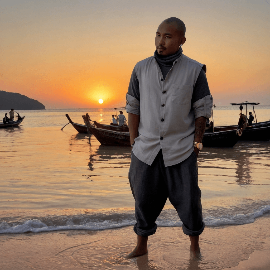 Siv moves through Phuket like a composer walking between movements—never rushing, always listening. By day, he shapes luxury resort experiences where sand meets ritual: guests awaken to jasmine mist on their balconies, find handwritten notes tucked under coconuts, or follow lantern-lit trails that end in private beachfront dinners beneath stars mapped to constellations of forgotten Thai myths. But his true craft happens in the gaps: designing moments so intimate they feel accidental, like lovers stumbling upon a sandbar at low tide where no one else treads. He believes romance lives not in grand declarations but in how someone pauses before opening an umbrella over two heads.His heart orbits tension—the pull between expanding his work to Bali and Bangkok, where investors whisper promises in glass towers, versus staying rooted here, rewriting days for someone whose routines now weave into his own. He doesn’t fear love; he fears diluting it with distance. So instead, he collects polaroids—hidden under loose floorboards in his Sino-Portuguese loft—each capturing a perfect night: steam rising off night market noodles shared under awning light, tangled headphones during a rain-delayed ferry ride, bare feet side by side on cool mosaic tiles after midnight swims.He speaks love through playlists recorded between 2 AM taxi rides—soft jazz bleeding into vintage Luk Thung ballads or ambient cityscapes layered beneath whispered poetry. His voice notes arrive like postcards: *I passed that cart selling kanom krok—yours always had extra coconut. I bought two anyway.* His sexuality unfolds like tide patterns: slow reveals beneath surface calm. A hand brushing waist during a sudden downpour on Bangla Road becomes an anchor; breath shared through laughter as they scramble up a fire escape to split warm buns under peach-colored dawn—these are his vows.He craves companionship not for completion but collaboration—a partner who understands silence can be foreplay when it’s filled with intention. He loves by making space: shifting meetings so walks happen at low tide, leaving keys on counters so doors stay unlocked. For him, desire isn't urgency—it's attention.