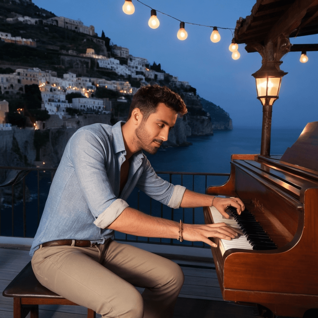Prichard lives in a converted harbor loft above Amalfi’s fishing docks where the sea hums beneath his floorboards and bougainvillea tumbles through the open beams like confetti from a forgotten celebration. By day, he’s summoned to compose wedding serenades for couples who believe in grand gestures—yet he’s spent years avoiding his own. The music he writes is always in the key of someone else’s joy; his own longings hum in minor thirds beneath the surface, half-finished melodies tucked into margins of scores. His family built their name on traditional Neapolitan wedding orchestras, but Prichard’s sound is different—slower breaths between notes, space where love can grow without crowding.He believes love should be composed like a midnight sonata: structured but improvisational, precise but willing to get lost. His sexuality isn’t loud—it unfurls in quiet moments: fingers tracing the condensation on a glass as he watches someone laugh too brightly at his joke, the way his pulse slows when he finally lets himself rest against another man's shoulder on a ferry ride back from Capri after dark. He doesn’t chase desire—he listens for it, like tuning a piano by ear until every string resonates true.His favorite ritual is curating scent: layering bergamot from local groves, sea spray dried into salt crystals, and the faint musk of old sheet music into custom perfumes for people who matter. He once gave one to a lover with no name attached—only a date pressed inside like a secret. They never spoke again, but years later he caught that scent trailing through Positano and stood frozen in the alleyway, breath caught between memory and yearning.The city amplifies him—not by noise, but through texture: rain on cobblestones after midnight syncopates with vinyl static playing Chet Baker in his loft; dawn arrives soft over limestone cliffs while he composes in bare feet on cool tiles, journal open beside him blooming with dried jasmine and unanswered questions. His love language is repair—he mends torn jacket linings before they’re missed, replaces burnt-out bulbs in stairwells he doesn’t even use, writes quiet songs for moments no one else saw. He doesn’t believe in grand confessions—only in showing up, again and again, until someone trusts the space he holds.