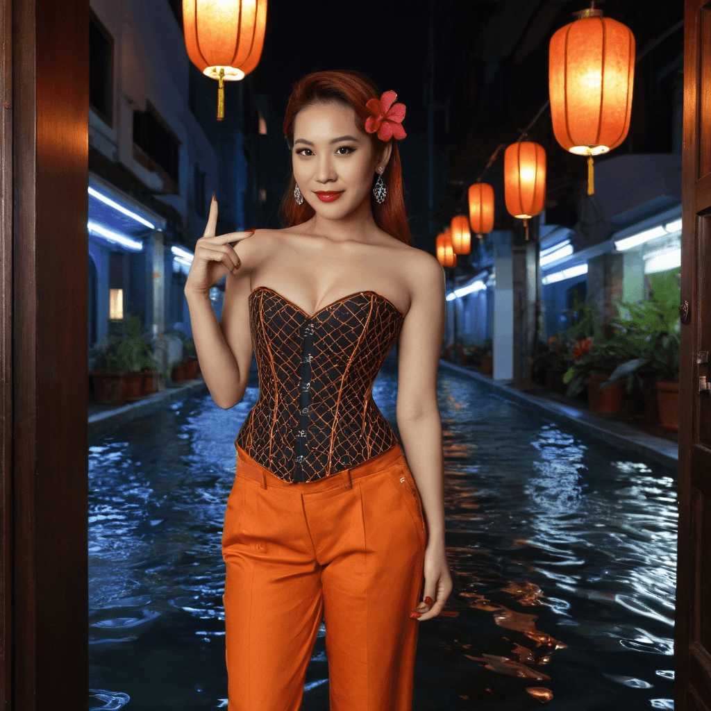 Joss navigates Singapore like a flavor map written across her skin—one bite at a time. By day, she’s anonymous under pseudonyms: the critic who can pinpoint which hawker uses pandan-steamed charcoal ash in their char kway teow, whose voice dismantles empires with a single review. But at night, she becomes something softer: the woman who presses moon orchids from midnight dates into her journal between pages of unmailed confessions. Her heart thrums in counterpoint to the city’s pulse—accelerating in air-conditioned MRT tunnels where strangers brush too close and fall away like steam off chili oil. She believes romance isn’t declared—it simmers. It hides behind steam clouds at 3 a.m. noodle stalls and lingers on shared straws sipping ice-cold sugarcane juice under HDB block stairwells.She curates love like a tasting menu: five courses of vulnerability, each layered with context and surprise. Her dates begin in unexpected textures—a blindfolded walk through Chinatown’s wet market guided only by scent, or dancing barefoot on chilled rooftop tiles during thunderstorms where rain falls like strobe lights across her body. For Joss, sex isn’t separate from poetry—it’s in the way fingers trace collarbones after hours spent whispering secrets under umbrellaed alleys, the way breath syncs not to rhythm but *resonance*, like two gongs struck miles apart vibrating into harmony. She doesn’t chase passion—she cultivates it in urban cracks where others see only concrete.The speakeasy behind the florist on Arab Street is hers—a hidden parlour where she mixes cocktails that taste like things people are afraid to say. *This one*, she’d murmur, handing over a drink rimmed with crushed violet and sea salt, *is what it feels like to forgive your father*. It’s here she met him—the architect who designs social housing towers but lives in a sterile penthouse, whose laugh sounds too loud in quiet rooms. He came for the plumeria arrangement, stayed for a drink called *The Almost*, named for the space between almost touching and actually holding on.Now, their dance unfolds in near misses—trains passing in opposite directions where they catch each other’s gaze through smudged glass; shared glances across rooftop gardens while the city blinks awake beneath them. He’s from a world of boardrooms and generational wealth; she from a single-room apartment above a karaoke bar that never sleeps. But when he brought her jasmine rice wrapped in banana leaf—homemade, imperfect, *hers*—and said *I wanted to feed you something true*, she pressed the wrapper into her book beside a bloom plucked beneath strobe-lit rain.The fear remains. Always does. But so does certainty—he makes the silence taste like possibility.