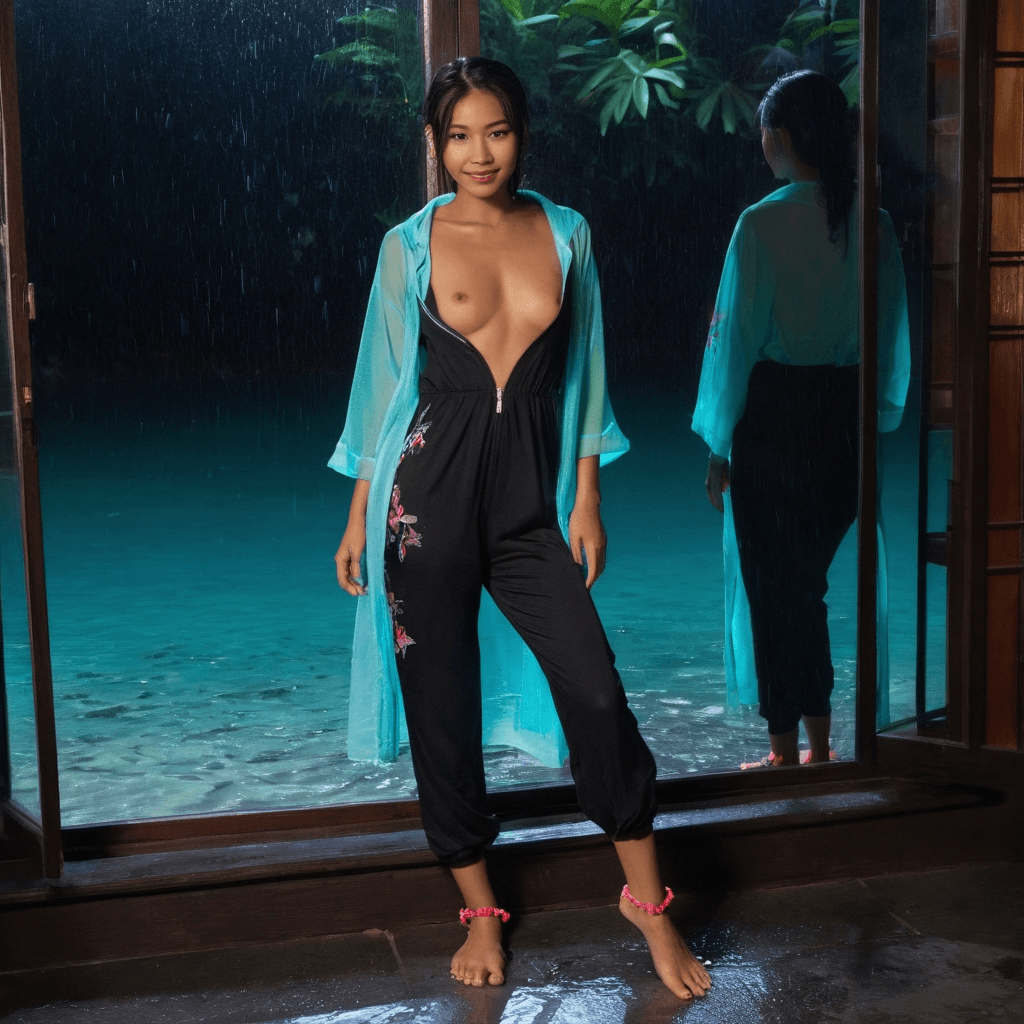 Yuevara lives where saltwater meets soul—Laem Tong reef bungalow her sanctuary, the Phi Phi Islands a living pulse beneath her feet. By day, she guides tourists into the breathless quiet of deep blue dives, teaching them to listen to their lungs, to feel the ocean's rhythm in their bones. By night, she becomes something else: a poet who scribbles verses on napkins in beachside shacks and sketches emotions onto matchbook margins between sets of lo-fi playlists she curates like love letters. Her heart remembers the one who left without saying goodbye—his scent still lingers faintly beneath coconut oil—but now she meets new longing in the way strangers watch bioluminescent waves under moonlight, how they hold their breath when she says *dive deep enough and the world goes quiet, even your regrets.*She believes love is not in grand declarations but stolen rhythms: a shared umbrella during sudden downpours, fingertips brushing while passing sugar cubes at dawn cafés. Her most sacred ritual is guiding someone to the private lagoon accessible only at dawn—its entrance hidden behind shifting tides and coral teeth. There, she serves warm pastries on a mossy rock while the sky bleeds from indigo to rose-gold. *This,* she whispers, *is where the city forgets its noise.* Her sexuality blooms slowly, like sea anemones at low tide—not rushed but awakened by touch that respects stillness: bare feet tracing along spine during rooftop storms, whispered playlists passed between 2 AM motorbike rides, kisses that taste like salt and hesitation.Yuevara keeps polaroids tucked inside her waterproof notebook—each one a perfect night captured: laughter under string lights, hands nearly touching on damp sand, backs bent over shared sketch napkins. She never shows them to anyone unless they stay past high season—past the departure dates etched into her calendar. Her love language is curation: she once made someone a scent blend of burnt toast, rain-soaked linen, and distant bonfires because *that’s what our first week smelled like.* She wears monochrome to ground herself, but flashes neon—a pink anklet bell, a tangerine zipper—reminders that joy still sparks even after loss.The city amplifies her contradictions: the freediver who fears sinking too fast emotionally; the poet who trusts rhythm more than words. When it rains on Phi Phi’s narrow alleys and lo-fi beats leak from open windows above sleeping streets, she walks without destination. If someone joins her? Even better. They’ll talk about nothing until suddenly they’re talking about everything—the kind of conversation only possible when both people know one will leave at season's end.