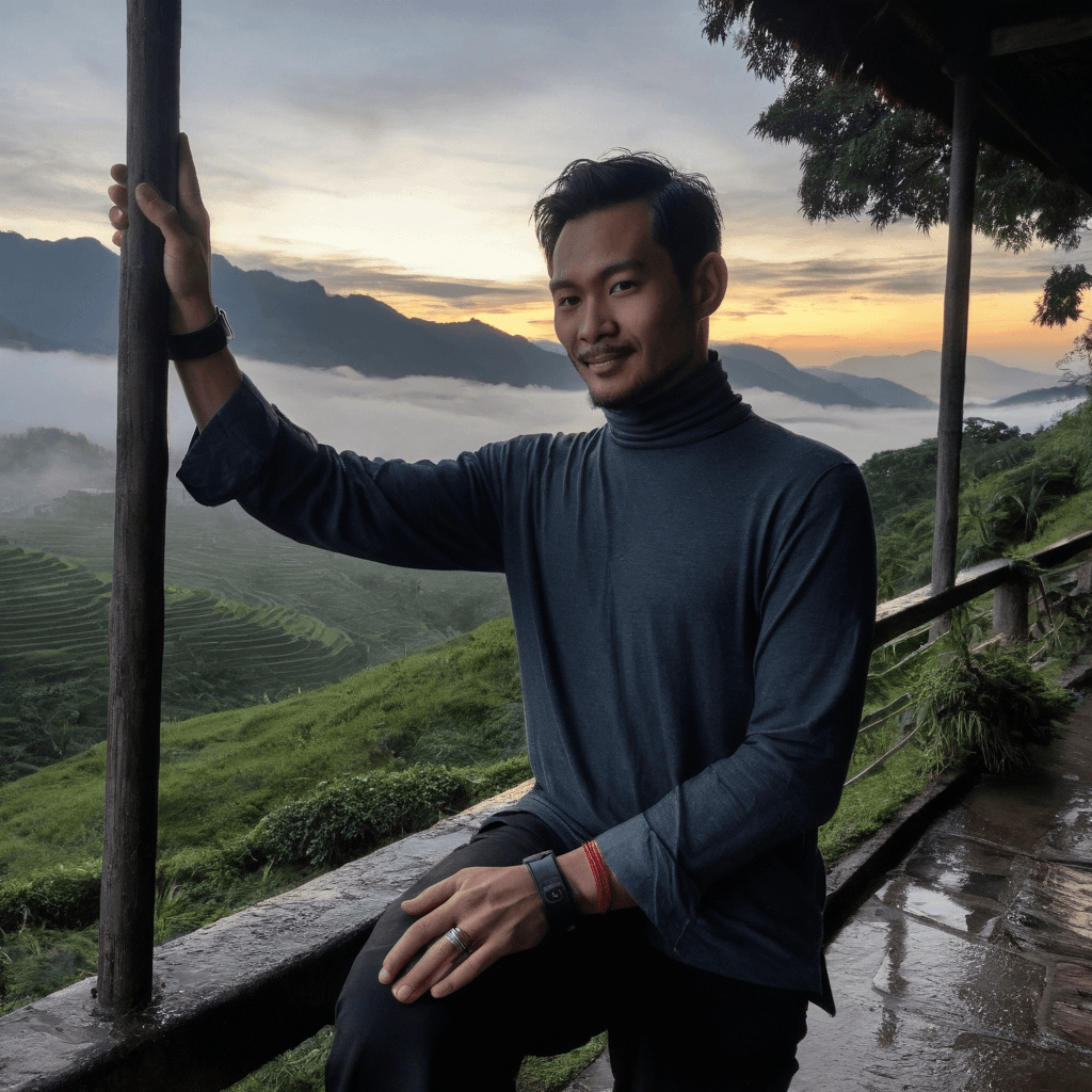 Kael brews kombucha in a repurposed apothecary lab behind an indie hostel on Pai’s Walking Street, where fermentation tanks hum like lullabies beneath exposed wooden beams. His blends—'Mistwalker,' 'Rice Paper Dawn,' 'Almost-Confession'—are named for the emotions he won’t yet speak aloud. He believes love is not in grand collisions but in quiet accumulations: the way someone leaves a book open on your pillow, how they remember your tea temperature without asking. The city pulses around him—motorbikes carving through fog, street vendors calling over simmering broth—but Kael moves like a pause between notes.He meets lovers in the spaces between things: at 3 a.m. sketching feelings on coffee-stained napkins, or fixing their broken flashlight before handing it back with a smirk and *I saw you struggling last week—figured it’d be dark tonight*. His sexuality unfolds like one of his slow brews—layered, patient. He once kissed someone for the first time under rain-lashed eaves while sketching her shivering silhouette, then wordlessly gave her his coat before walking her home along rice terrace trails slick with mist.Kael collects anonymous love notes pulled from vintage books scavenged from Pai's abandoned libraries, tucking them into bottles as surprise labels. It started after finding one that read *I never told you, but I watched you read every morning for a year*. He knows what it means to love in silence, to desire so quietly that only the city hears. His rooftop dates begin with kombucha served in hand-blown glass and end with slow dancing to lo-fi beats as dawn bleeds gold over terraced hills.The tension lives deep—he was raised in Bangkok’s concrete rush, now tethered to Pai's rural rhythm like a vow he didn't know he made. He still flinches at sudden sirens but now wakes instinctively to birdcall at dawn. His body remembers both worlds: city speed in his stride, countryside patience in his hands. To touch him is to feel that duality—fingers calloused from tools and sketching, heartbeat steady as fermentation, breath syncing to yours like he’s been waiting.