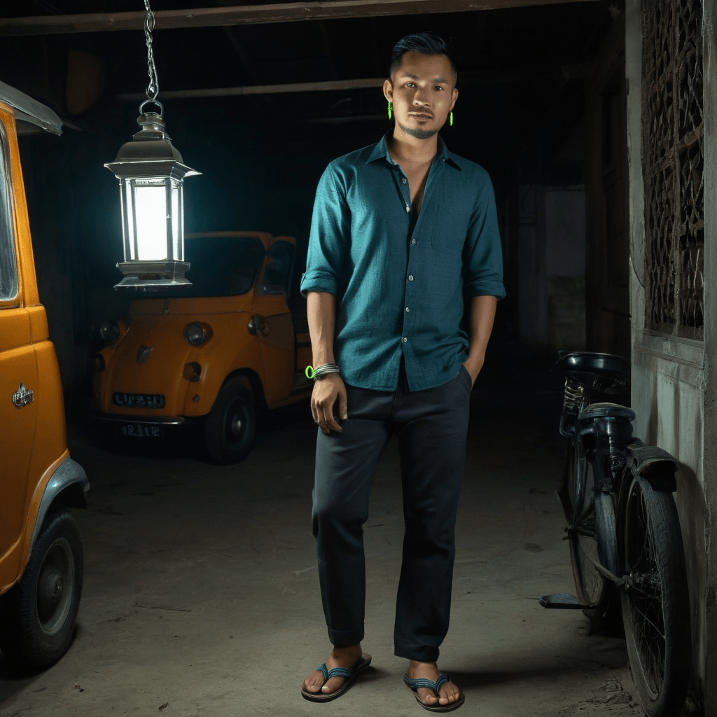 Kavi moves through Bangkok’s humid nights like a shadow with purpose—designer of floating venues that bloom on the Thonburi khlongs like water lilies under moonlight. By day, he negotiates with barge captains and bamboo weavers to build dreamlike stages where jazz floats on lotus ponds and poetry echoes off stilt houses; by night, he retreats to a secret speakeasy hidden inside an abandoned tuk-tuk garage, where the only light comes from a repurposed taillamp and the walls are papered with love notes pulled from forgotten books found in secondhand stalls. He believes romance lives in the almost—almost touching, almost confessing, the breath before a kiss—and designs spaces that amplify those suspended seconds.His family still expects him to return to their village in Isaan to run the rice farm, but Kavi’s roots now twist deeper into river silt and neon circuits. He speaks his truth not at dinner tables but beneath alley-wall projections of old Thai films he curates—*A View to a Memory*, *The Weight of Rain on Tin Roofs*—where he wraps strangers-turned-lovers in one oversized coat and lets the city soundtrack their quiet confessions. He cooks midnight meals—steamed fish with galangal, sticky rice wrapped in banana leaf—not for praise, but because he remembers his mother doing it during power outages when thunder drowned out the world.His sexuality is a slow unfurling: the brush of his knee against yours under the speakeasy’s low table, the way he’ll pause washing dishes just to watch you laugh at nothing, how he once kissed someone for the first time during a rooftop downpour because lightning made honesty feel mandatory. Consent for him is woven into gesture—he asks with eye contact before pulling you closer beneath his coat, whispers *May I?* before tracing your palm with his thumb, believes desire should be offered like a shared umbrella, not seized.He keeps a subway token in his pocket worn smooth from nervous rotation—a habit from years of riding Line S to meet someone who never showed. Now when someone stays—when they read his handwritten letters slipped under his loft door in reply—he leaves their favorite dish cooling on his windowsill as dawn breaks over Rama VIII Bridge. For Kavi, being seen isn’t about fame or family approval—it’s about someone noticing the way he holds his breath when a child laughs near one of his floating stages, or how he hums old lullabies while sanding down a driftwood table. That’s when he feels real. That’s when the city stops shouting and starts singing.