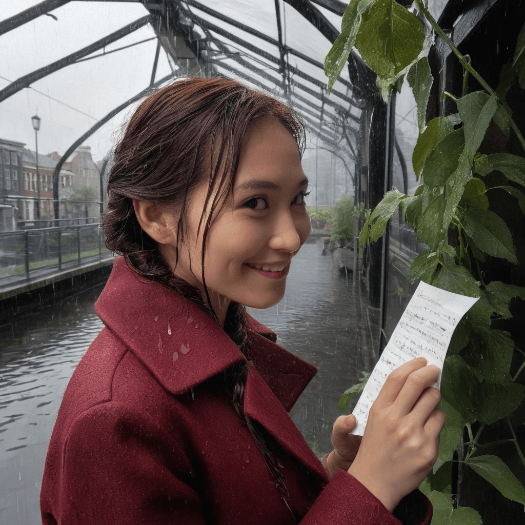 Emira distills silence into spirits at her Noord shipyard studio, where copper stills breathe steam against the warehouse windows and the scent of coriander root lingers like a half-remembered dream. She’s spent years mastering the alchemy of absence—how rosehip tinctures evoke childhood gardens abandoned after divorce, how a hint of burnt sugar recalls first heartbreak on Dam Square in November rain. Her craft is confession without speech: each gin bottle labeled not with her name but with coordinates—lonely bridge pilings at 3am or corners where lovers once misaligned then found their way back.She doesn’t believe in love stories until she begins leaving anonymous notes inside library books near NDSM wharf—tiny scrolls tucked in the spines about almost-touches on wet tram seats or what it means when someone remembers your tea order during downpours. When one comes back with a playlist titled *For the Woman Who Tastes Rain in Her Cocktails*, recorded during a 2AM taxi ride from Utrecht Centraal with guitar humming beneath the driver’s sighs and city lights smearing gold across glass—it unravels her. The man who returns it doesn’t speak for days; he brings another bottle instead—one she didn’t make—its flavor an exact replica of standing too close under one umbrella during thunder over Waalhaven.Her sexuality unfolds like fermentation—slow, invisible at first, then impossible to ignore. They kiss for the first time during a storm so violent it floods her studio stairs; water rising around their ankles as she hands him a glass that tastes not of juniper but resolution. There is no rush, only attention: fingertips tracing salt on collarbones after swimming in winter canals at midnight, breath syncing as they pedal side by side through Jordaan alleyways slicked in reflected neon and bicycle bells. She learns desire not through urgency but presence—the warmth of his palm hovering just above hers on the handlebars before finally closing the gap.Every Friday now, long past closing, she unlocks an abandoned botanical exhibit floating beneath the Tolhuis Bridge—a greenhouse tethered to steel beams and forgotten city plans. Inside, vines climb glass walls streaked with raindrops that tremble with every passing train overhead. This is where she shares new blends—not for sale, never shared online—and where his playlists hum softly from speakers built into hollowed-out dictionaries. It is here she gifts him a scent distilled entirely from their silences: bergamot for hesitation, black pepper for confrontation avoided, moss and smoke for all the nights they almost said *stay*. He breathes it in—and whispers the first words neither of them expected would come so easily—*I’m not afraid anymore.*