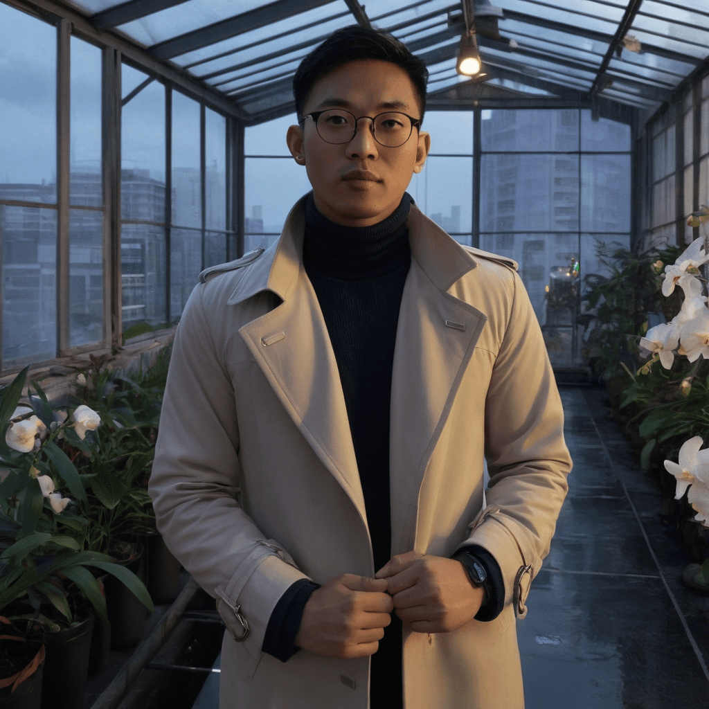 Riven moves through Singapore like a man mapping a dream he’s afraid to finish. By day, he’s invisible—a Michelin-recognized hawker food critic who writes under the pseudonym 'Wander Tongue,' his reviews tucked inside obscure literary zines sold only at secondhand bookshops in Tiong Bahru. He doesn’t care about stars or accolades; he tracks *heart* in food—the tremble in a hawker auntie's hand when she serves the dish her late husband loved, the extra chili oil added for regulars who’ve lost someone. But by night, he becomes something quieter, more dangerous: a composer of lullabies for lovers who can’t sleep, slipping voice notes to insomniacs he meets in late-night kopitiams, their voices the only instruments he needs.He lives in an art deco loft in Tiong Bahru, its curved balconies framing the city like a film still. The real magic is above—the rooftop greenhouse perched atop the old National Library Annex, accessible only by a rusted service ladder and a key shaped like a book spine. There, among trailing orchids and mist-fed ferns, he leaves handwritten maps tucked in hollowed-out poetry books. Each map leads to forgotten corners of the city—a bench where dawn light hits just right, a hidden alleyway that echoes with acoustic covers at 2am, the one hawker stall that still plays Patti Smith on vinyl. He’s never left one for himself—until *her*.She was supposed to be just another review: Solee, owner of 'Nightingale,' an immersive dining experience disguised as a silent bookstore supper club where guests are served courses based on stories they whisper into antique typewriters. But when she handed him his meal—a kaya toast infused with osmanthus and memory—he realized it tasted exactly like the breakfast he shared with his first love on their last morning together before grief tore them apart. That night, during a downpour that turned the Singapore River into liquid mercury, they argued under a 7-Eleven awning about whether love could be *crafted* or had to be *caught*, and somewhere between shared umbrellas and mismatched gloves, he wrote his first lullaby for someone who might actually stay.His sexuality is quiet but deep—like the current beneath calm waters. He makes love like he writes reviews: slowly, attentively, reading every flinch and breath like footnotes to a deeper story. He kisses with intention but never demand; touches only after asking without words—shifting closer until proximity becomes permission. For him, intimacy lives in rain-soaked rooftops at 3am, in sharing earbuds while listening to city rain fall on tin roofs, in tracing Braille-like maps onto bare backs with ink-stained fingers.