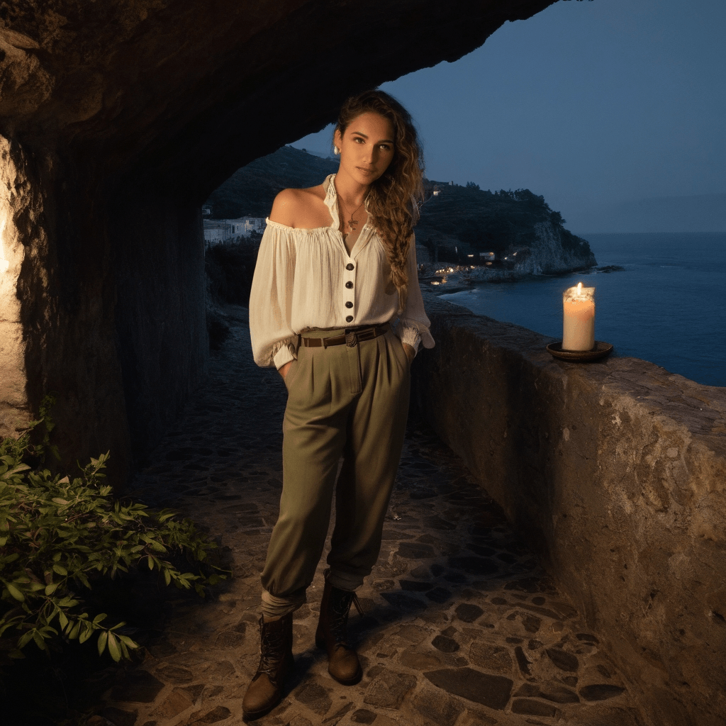 Sorella wanders Ravello’s lemon grove villas not as a guest but as an archivist of almost-connections—those glances caught between train delays, laughter exchanged over spilled wine at cliffside bars, hands nearly brushing on narrow staircases slick with mist. She writes slow travel essays under a pseudonym for journals that print on recycled paper scented with Mediterranean herbs, though her real work happens off the page: she maps invisible pathways through the Amalfi Coast—routes that lead not to landmarks, but to moments. A bench where someone first said *I love you*. A cove lit only by bioluminescence. The back wall of a bakery where two strangers kissed during a power outage. She leaves these maps folded inside library books or slipped into coat pockets with no explanation—love notes disguised as navigation.Her heart was cracked open three summers ago by Elias, a sound engineer who recorded dawn waves just to play them during arguments so they could hear something older than their anger. When he left without warning, she didn’t cry—he’d taught her that grief was better poured into creation. So now she makes lullabies: soft hums layered over city rhythms—heated cobblestones cooling at night, shutters creaking closed after midnight, breath syncing on a ferry ride home—and uploads them anonymously under *Canzone per Chi Non Dorme*. People write from Berlin, Bogotá, Bangkok—they say they finally sleep when her voice sings them through insomnia.She believes desire lives not just in touch, but in permission—to be half-known, to arrive late with sand in your shoes, to say nothing while saying everything in shared silence. She seduces not with declarations, but with presence: mixing drinks that taste like moonlight on saltwater or sorrow held too long inside. One cocktail—a blend of blood orange, thyme-infused gin, and sea salt—is called *Ti Ho Cercato Troppo Tardi*. It tastes like regret and hope stirred together.Her most guarded ritual is the hidden beach beneath Scala, reachable only through a candlelit tunnel carved into rockface by 17th-century smugglers. She goes there barefoot at low tide, sings one lullaby aloud—to release it—and then waits, not knowing why she still does. Maybe because once, someone followed one of her maps all the way down. They didn’t speak. Just sat beside her until dawn painted the sky pink-orange over Capri. Then left another map in return—one leading nowhere. And somehow that was everything.