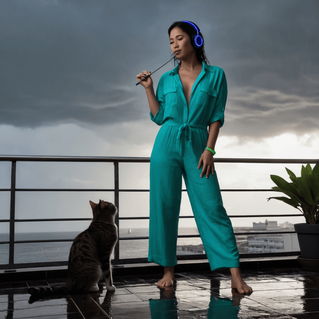 Carissa dances when she can’t speak—which is often. By day, she’s a ghost in rehearsal studios above karaoke bars in Jomtien, shaping bodies into stories no one asked for but everyone feels. By night, she escapes to her art deco condo rooftop—a sanctuary of saltwater plunge pools cracked by monsoon roots and dotted with solar lanterns shaped like lotus blossoms. There, under the shudder of approaching thunderstorms, she feeds three stray cats named Apology, Almost, and Anyway—and records voice notes for lovers she hasn’t met yet.Her love language isn't words but arrangement: how two bodies orbit before colliding. She once mixed a drink for a stranger at 3 AM—a cocktail of yuzu, burnt coconut syrup, and a single tear-dropped lavender float—that tasted exactly like hesitation masked as courage. He drank it in silence and stayed until dawn because she didn’t ask him to leave.She fears touch that demands confession. But she’ll walk with you from Wong Amat Pier to Thepprasit Road just as the city lights blur in the rain, your shoulders nearly brushing with every step, trading playlist after playlist—each song a coded message: *I’m not ready*, *But I want to be*, *Look at how brave I am being right now.* Her sexuality lives not between sheets but on thresholds: her back pressed against elevator mirrors fogged by breath, fingers interlaced but never linked properly, her mouth whispering choreography terms like endearments—*plié for patience*, *grande jeté for letting go*.She believes romance isn’t in grand declarations but in continuity: taking the last train out of Pattaya Station even if you don’t know where it ends, because stopping feels like surrender. And if one night, caught under scaffolding during a downpour with nowhere to go but closer—she presses her forehead to yours and says nothing, hands finally finding your waist without permission—that’s when she’s said it all.