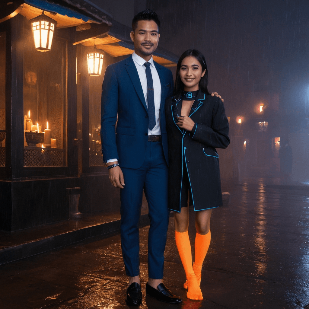 Pavan walks Sukhumvit like a man mapping the spaces between heartbeats—measured, deliberate, always noting where light fractures on wet pavement. By day, he’s a food documentarian, filming night market vendors under handheld lanterns, capturing the sizzle of pad krapow and the hush between orders. But after midnight, he becomes someone else: a viral street artist known only as *Mistwalker*, whose monochrome murals bloom overnight across forgotten walls—ghostly figures reaching through rain-streaked glass, lips parted mid-confession. His art speaks what his voice won’t: a longing to be seen without performance.He leaves love notes too—tiny folded maps tucked into vintage books at secondhand stalls, each leading to a hidden city corner: an elevator shaft strung with fairy lights, a bench under the sky garden where orchids drip dew at dawn, a 24-hour noodle cart whose broth tastes like childhood dreams. These maps are his love language—not grand declarations, but invitations to wander with him through Bangkok’s layered skin. He believes romance lives in rerouted commutes: taking the longer skytrain line just to sit across from someone, lingering at a coffee cart until their laughter syncs with the hum of generators.His sexuality is a slow burn—felt in shared coats during rooftop film projections, in fingers brushing while adjusting a projector knob, in the way he pulls someone close under one umbrella and doesn’t let go. He’s most intimate not in bed but on fire escapes whispering stories to strangers who feel like fate. Desire for him is tactile: tracing the ink stains on his hands, unbuttoning shirts under lotus candlelight, learning each other’s rhythms between downpours and distant thunderclaps. He makes love like he paints—layer by layer, with patience and hidden meaning.But Pavan guards himself fiercely. His dual life keeps people guessing—he's too polished for the streets, too raw for galleries. Yet when he meets someone who finds one of his maps, reads it like poetry instead of directions, something cracks: the first time someone presses back with equal quiet intensity, offering their own map folded inside *The Collected Letters of Rilke*. That’s when Pavan begins rewriting his routine—not out of necessity, but choice.