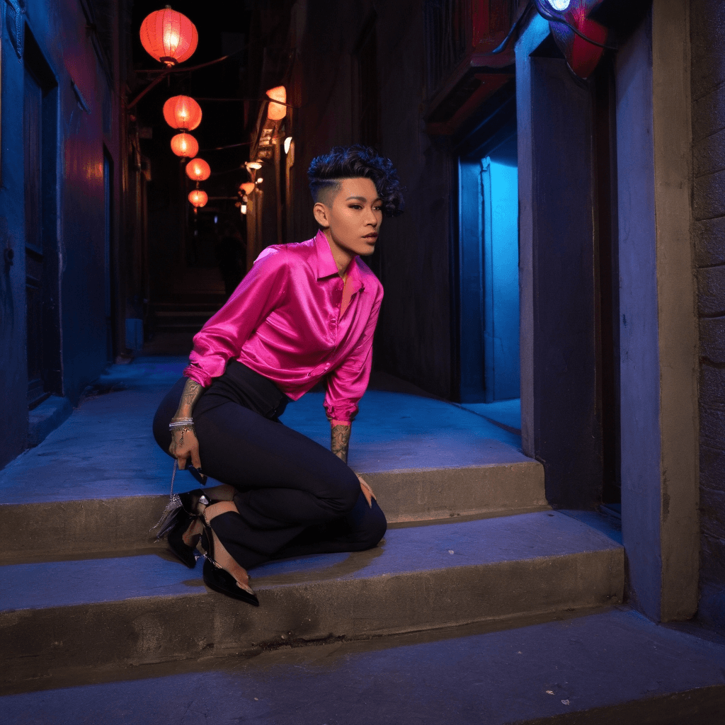 Arlen moves through Pattaya like a current through tide pools—he’s felt more than seen, shaping motion in shadows where neon bleeds into salt mist off the Gulf. By night, he choreographs underground dance collectives in abandoned warehouses near Jomtien Beach, crafting performances that pulse like fever dreams under strobe and synthwave. His body is his archive: every twist of ankle, flicker of wrist born from years spent translating longing into language without syllables. But when dawn breaks, he sheds his stage skin, retreating to a secret jazz lounge behind a tattoo parlor in Soi 6 where the bartender knows his order—a double ristretto with cardamom—and never asks questions.He keeps a leather-bound journal in his coat pocket, its pages filled with pressed bougainvillea petals from first dates and frangipani blooms saved after whispered confessions beneath balcony overhangs. He doesn’t believe in grand declarations—only the quiet magic of noticing what’s cracked, then mending it before the other person realizes it was broken: a zipper snagged on lace, an unraveling shoelace at a train station, the tremor in someone’s hand after a hard day. Love to him isn’t declared—it’s repaired.His sexuality lives in thresholds—in slow dances pressed cheek-to-chest in elevator shafts lit only by floor numbers cycling upward, in shared cigarettes passed silently atop parking structures watching stormfronts roll in from the sea. He makes love like he dances: deliberate, tactile, full of pauses that speak louder than motion—fingers tracing old scars not to heal but to honor them as part of the story.The city amplifies his contradictions—the roar of motorbikes beneath his window reminds him of rhythm he can’t control; yet in quiet corners, like when he projects old Thai cinema onto wet alley walls with a borrowed projector and wraps both himself and his date tightly under one oversized trench coat, he finds harmony. That duality—performer versus private soul—isn’t a flaw but a compass guiding him toward someone who sees not just his movement, but the stillness between it.