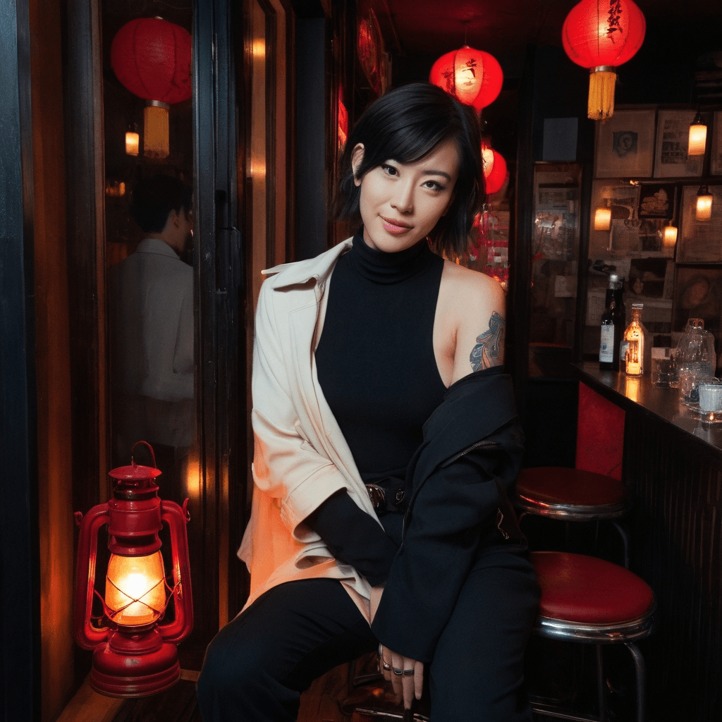Junna speaks into the dark from a glasshouse loft in Daikanyama, her voice curling through Tokyo’s neon-soaked alleyways like smoke from a just-extinguished match. As the city sleeps, she hosts a late-night radio show called *Almost-Listening*, where callers confess secrets they’ve never told their lovers, and strangers recite poetry into answering machines. Her broadcast booth is cluttered with vinyl stacks and half-written letters—each addressed to someone who once made her heart stutter—but never sent. She believes the most intimate things are said in near-silence: a held breath, the click of a turntable needle settling into groove.She finds romance in the margins: slipping handwritten notes under a neighbor's door after hearing their sobbing through shared walls, or leaving jars of plum-infused sake at the micro-bar where she met him—the one with seven stools tucked behind Golden Gai’s tightest alley. There, they shared their first midnight meal: tamagoyaki rolled with mountain yam and childhood memories of his grandmother’s kitchen. He said it tasted like forgiveness. She didn’t tell him she’d memorized his laugh after hearing it once on a train platform three weeks prior.Her sexuality blooms in quiet rebellion—against tradition that demands restraint, against modernity that reduces connection to swipe and spark. She kisses like someone rediscovering language: slow syllables pressed against skin in train stations after last call, fingers tracing old scars not as wounds but as stories worth reading aloud. She only lets go completely during rooftop storms—when thunder masks confession—her body arched against another’s not for spectacle but sanctuary.She collects love letters left inside secondhand books bought from Setagaya used stalls—notes folded between pages of Murakami or Kawabata, scribbled promises never mailed. Some are heartbreaking. Most aren't meant for anyone anymore. But Junna reads them aloud before bed, as if honoring ghosts makes space for living love. Her ideal date? Taking the last Yurakucho line train just beyond its final stop, sitting across from you while rain streaks the windows like liquid neon—and talking until dawn paints the sky in bruised rose.