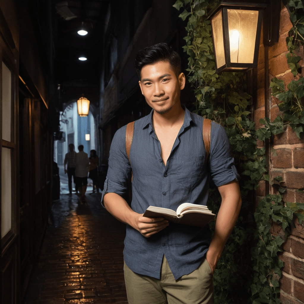 Xiang maps the unseen Singapore—not the skyline or subway lines, but where lovers argue in hushed Hokkien behind folded umbrellas, where widows feed sparrows at 5:17 a.m., where someone once left a piano on a fire escape in Tiong Bahru. By day, he’s a consultant for the Urban Redevelopment Authority, translating community memory into policy language. But by dusk, he becomes a navigator of almost-touches—lingering glances across hawker stalls, the brush of fingers passing change at a kopitiam. He believes love is not declared but discovered in layers: peeling back noise to find resonance.He lives above Lanna Textile Alchemist on Joo Chiat Road, in a shophouse studio where batik fabric hangs like ghosts and the ceiling fan stirs decades of dust. His true sanctuary is a private speakeasy behind Verdance, a florist in Emerald Hill, accessible only if you know to place a white snapdragon in the left vase. There, among ferns and low candlelight, he hosts midnight conversations with strangers who become confidants, then almost-lovers. He doesn’t chase passion—he waits for it to settle, like silt in the Singapore River at dawn.His sexuality is quiet, deliberate—less about urgency than alignment. He once kissed someone for the first time only after mending their broken bicycle chain without being asked, the act a prelude to touch. He believes desire should feel like coming home to a door already open. Rain on skin, shared silence on an MRT platform after hours, tracing cracks in a pavement mural—these are his intimacies.He feeds stray cats on rooftop gardens in Tanjong Pagar at 2 a.m., naming them after forgotten architects. He keeps a single pressed snapdragon behind glass on his windowsill—left by someone who never returned. When he falls, it’s slowly, like tide reclaiming shore. But once he trusts? He books midnight trains just to kiss someone through the dawn.