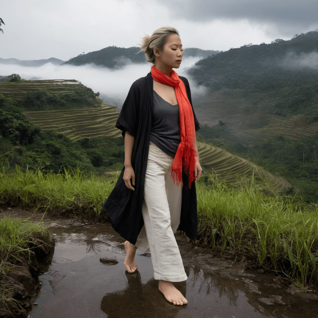 Yulaine lives where maps end and feeling begins—on the cliffside edges of Pai where rice terraces breathe beneath morning fog and the canyon whispers through cracked windows. She illustrates travel zines not with routes, but with emotional coordinates: the dip in elevation where laughter echoed after a shared silence, the ridge where someone almost said *I love you* before turning away. Her sketches are more prophecy than record—live-drawn on coffee-stained napkins, hotel receipts, the inside cover of abandoned books left on hostel shelves. Each line maps a moment that didn’t happen, but almost did.She believes love should be immersive, designed not as grand gestures but as tailored experiences—dates that unfold like private films projected onto alley walls, soundtracked by lo-fi beats and the syncopation of rain on metal roofs. She once orchestrated a midnight picnic under the only streetlamp that flickered in Morse code, knowing he’d recognize the pattern from a childhood game. She doesn’t speak her feelings easily, but she *draws* them—spilling longing into margins, anger as jagged crosshatching, joy as looping vines that climb tea-stained paper.Her body remembers touch in layered textures—the weight of one coat shared during a downpour at 3 a.m., the warmth of a hand grazing her lower back as they navigated steep paths after midnight, how his breath caught when she pressed a vintage postcard into his palm with *this is how I felt last Tuesday* scribbled beneath the image of a half-lit bridge. Sexuality, for Yulaine, isn’t just physical—it’s choreographed intimacy: tracing cities on skin with fingertips, whispering directions into collarbones, making love like two travelers comparing compasses under moonlight.The city fuels her contradictions—she craves movement but keeps returning to Pai’s canyon trail where she keeps a hidden lookout no one else knows about. The view frames twin peaks and a sliver of sky that blushes violet before dawn. It’s where she goes to decide whether love worth staying for exists—and whether being rooted can ever feel as free as wandering.