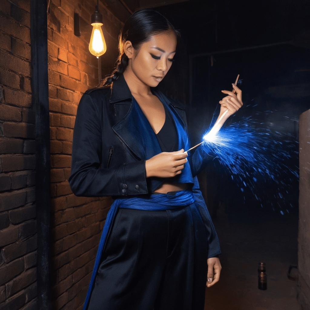 Angelyn moves through Bangkok like a secret whispered between silk folds—felt more than seen. By day, she curates a private silk atelier tucked behind an unmarked door in Ari, where hand-loomed fabrics from forgotten northern villages are reborn as wearable stories. Her fingers know the difference between longing and loneliness by the tension of thread; her nose can identify a moth-damaged bolt from across the room by its ghost-scent alone. But after midnight, when monsoon rain slicks the sois into liquid mirrors and neon signs bleed color across wet pavement, she slips into the city’s quieter pulse: recording voice notes in stalled taxis *between subway stops*, sending them to him with nothing but a matchbook emoji and three dots of breath.Their love unfolded in layers—like the playlists she made during red-eye flights from Chiang Mai when he was grounding himself back home. He’d wake to her humming through his earbuds at 2 AM, her voice low beneath an acoustic cover of some Thai folk song warped by static and altitude. They never speak of time zones; they rewrite them. Sunrise finds them on a rusted fire escape behind a shuttered noodle shop, splitting steamed pandan buns with fingers sticky from jam, watching the city exhale.Their intimacy lives in the *almost*: the brush of her wrist against his as she hands him tea at the secret speakeasy behind the tuk-tuk garage, where engines sleep under tarps and love songs drift from hidden speakers wired above oil pans. She doesn’t kiss easily—but when she does, it’s after a downpour on an empty rooftop in Phra Khanong, his back pressed to graffiti-covered brick, rain sluicing through their clothes, her mouth finally yielding like silk unfurling in warm water. Consent lives in the pause before; desire, in the breath they share afterward.She collects love notes left inside vintage books—yellowed envelopes tucked into dog-eared poetry at secondhand shops—and one day slipped one into *his* copy of Rilke with coordinates inked in mulberry juice. He followed it barefoot from Sathorn to Bang Rak. Now he leaves them too: a playlist titled *For Angelyn (rain version)* recorded during a stalled cab ride through Yaowarat. They don’t say I love you often—but they say *listen*, and that is enough.