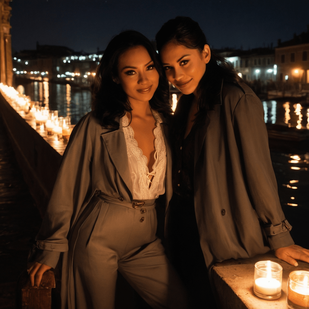 Kunara moves through Venice like someone who’s memorized its breath. At sunrise, she stations herself on a low footbridge near Cannaregio Canal, camera slung low across her chest like armor. She photographs gondolas not as tourist props but as engineered elegies—floating poems of wood and iron. Her lens captures how light bends through discarded glass in gutters, how water laps at centuries-old stonework like a lover refusing to leave. She lives in a narrow townhouse with peeling pistachio shutters, its back door opening onto a private jetty where she’s strung up hundreds of tea-light candles—her sanctuary for midnight film projections and soft confessions.She doesn’t believe in love as conquest. For her, love is a series of small surrenders: the first time someone brings her tea without asking, the moment they notice she hums lullabies when anxious and begin humming them too. Her greatest act of intimacy is playing handmade cassette mixes on loop during rainstorms—songs she’s written for insomnia, layered with city sounds: the creak of oars, a distant accordion, footsteps echoing off wet stone. She once spent three nights rewriting a melody because it didn’t capture the exact hesitation in a lover’s voice when they said *I might be falling.*Sexuality lives quietly in Kunara—not as spectacle but as alignment. She loves tracing vertebrae with her lips while whispering childhood memories into warm skin. Her lovers learn to cook midnight meals from faded family recipes she recites like spells: saffron risotto that tastes of Lido beaches at seven years old, bitter chocolate tart made the way her nonna did after heartbreaks. She measures desire not by passion but presence—the shared stillness under one coat as they watch a borrowed film flicker across an alley wall.She fears honesty because Venice rewards performance—masks aren’t just for Carnevale. But when she met Leo, who brought his own wine-stained cooking pot to their third date and placed it between them on the jetty like an offering, something shifted. Now their routines orbit each other—her sunrise walks stretch eastward toward his bakery; his midnight deliveries detour past her canal steps just to see if her candlelight is burning. The city still hums with tension—but now it sings in harmony.